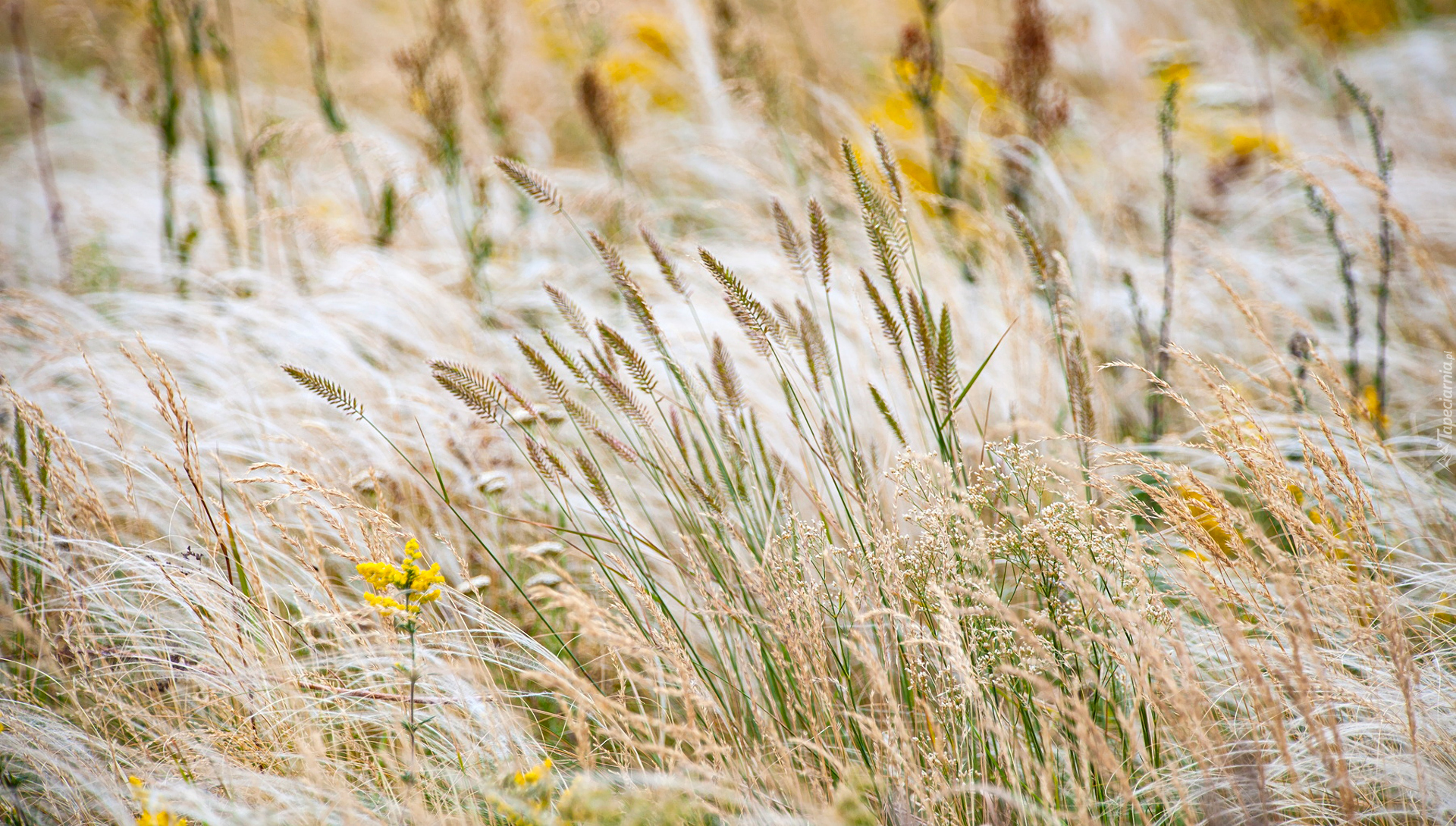 Edytor tapety: Kwiaty w wysokiej pożółkłej trawie