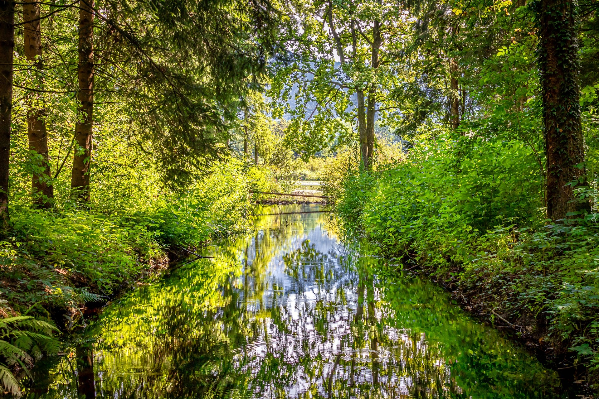 Edytor tapety: Rzeczka w słonecznym lesie