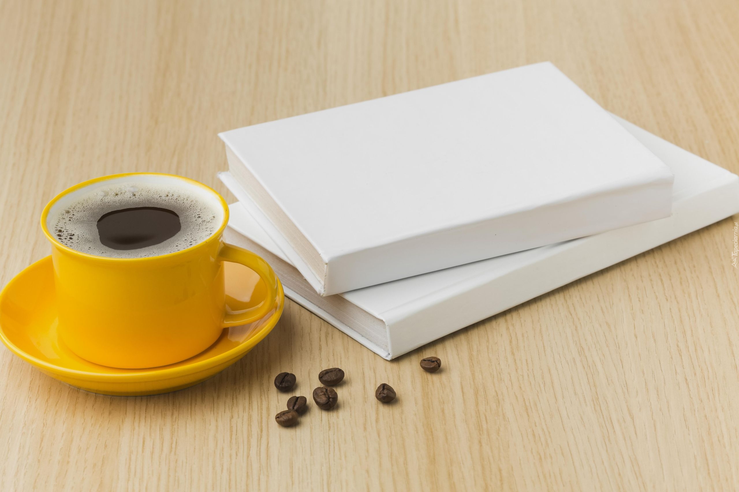 Edytor tapety: Filiżanka kawy obok książek