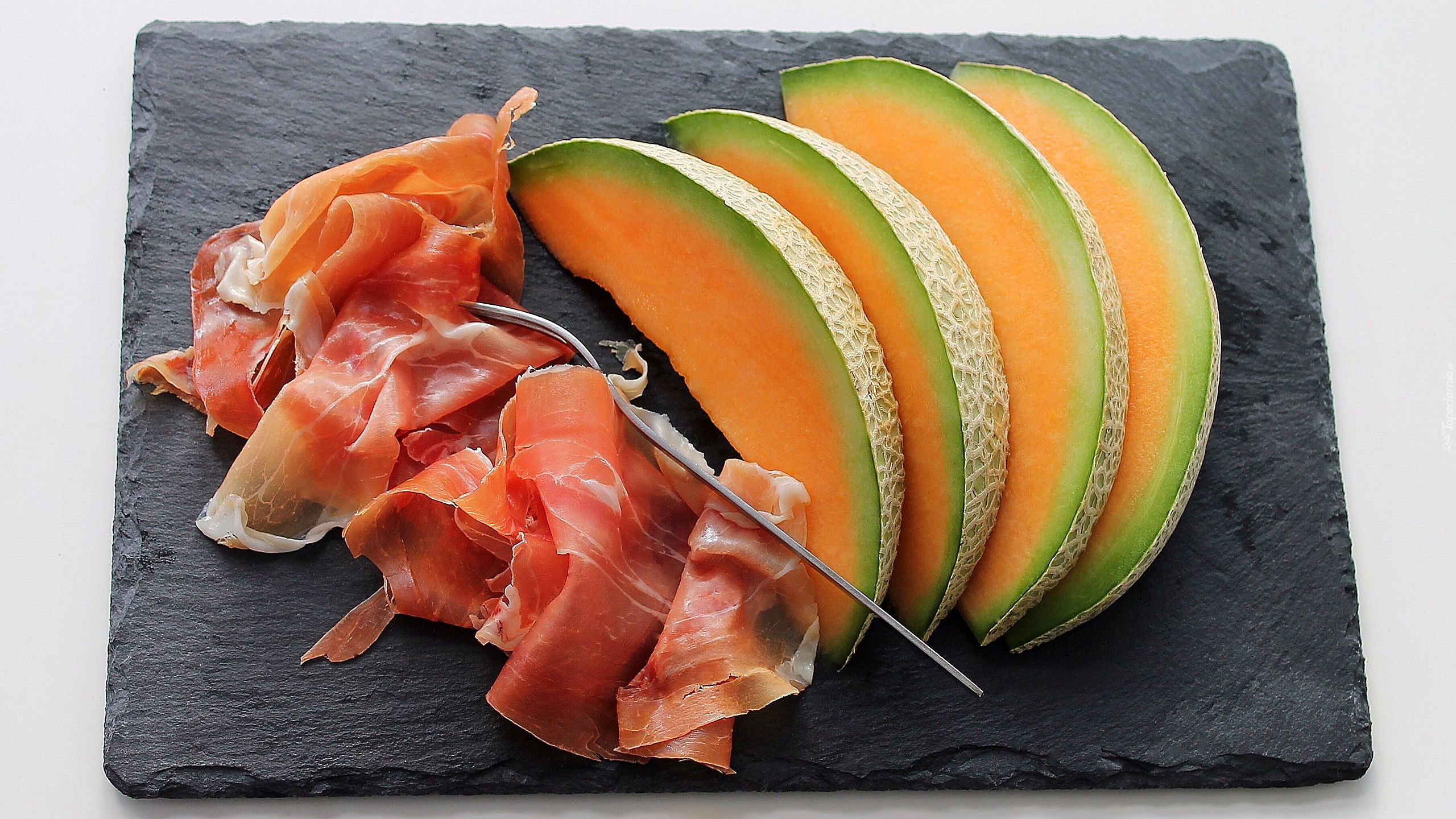 Edytor tapety: Plastry szynki i kawałki melona