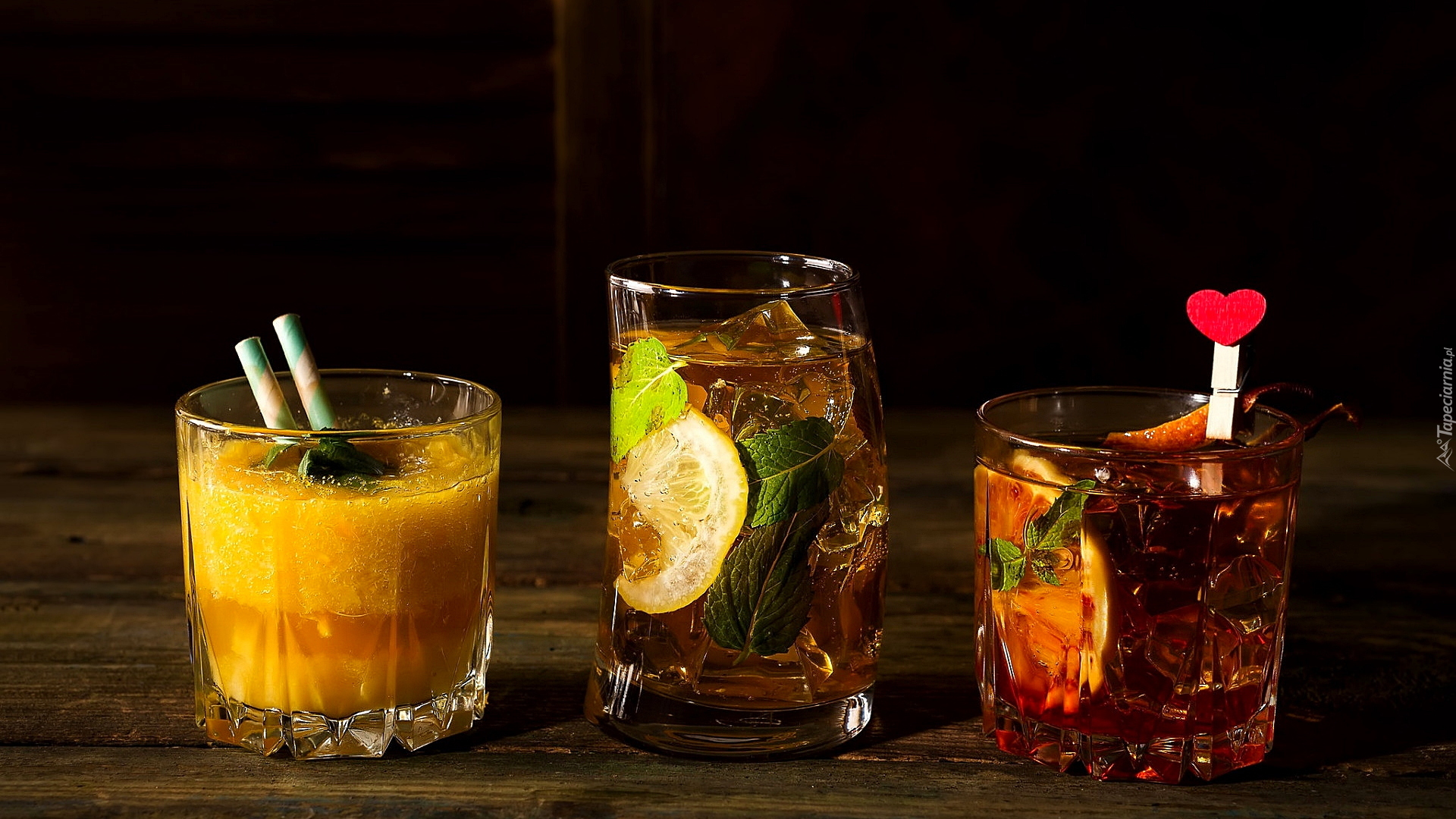 Edytor tapety: Trzy szklanki z różnymi drinkami