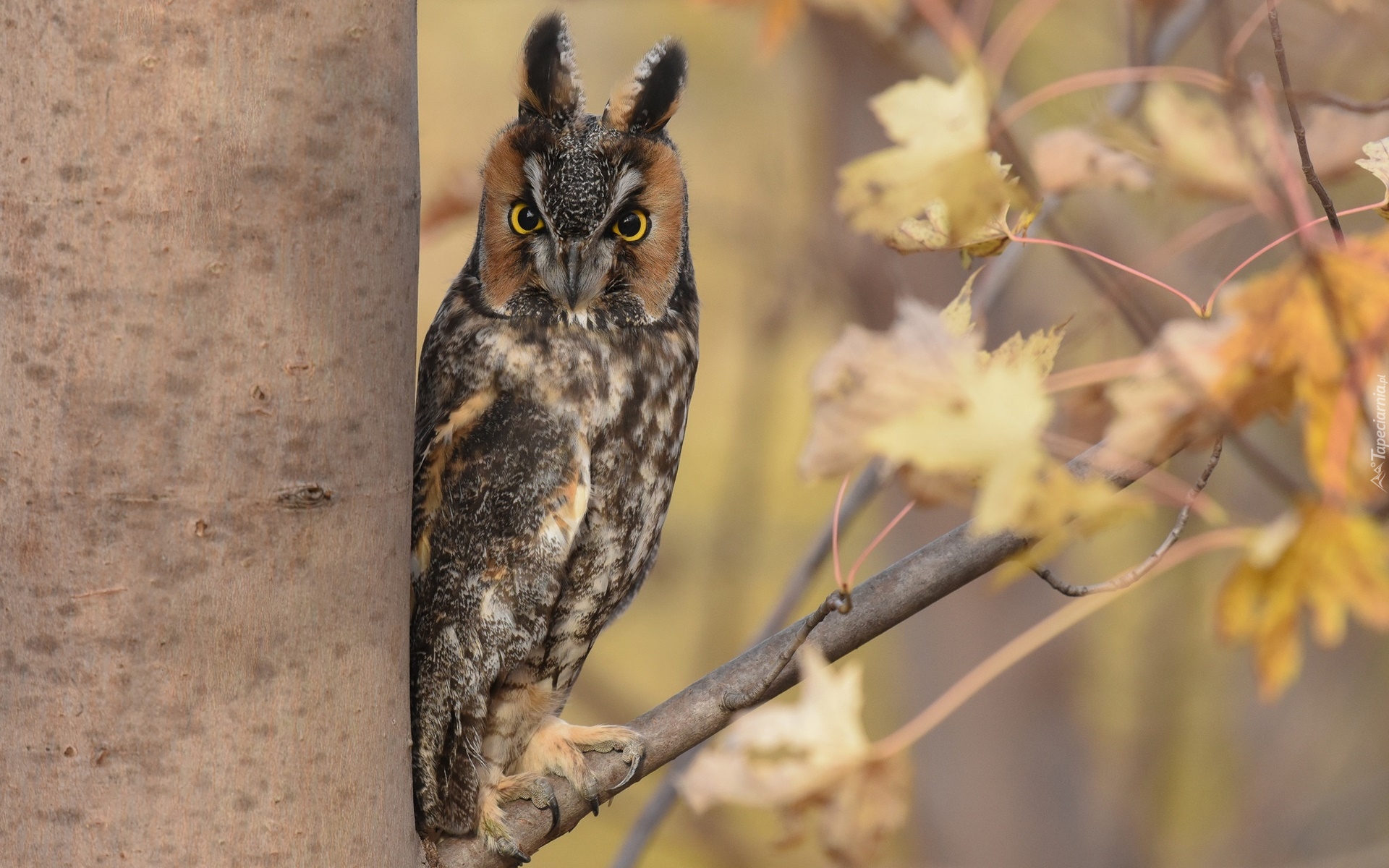Edytor tapety: Uszatka zwyczajna na gałązce