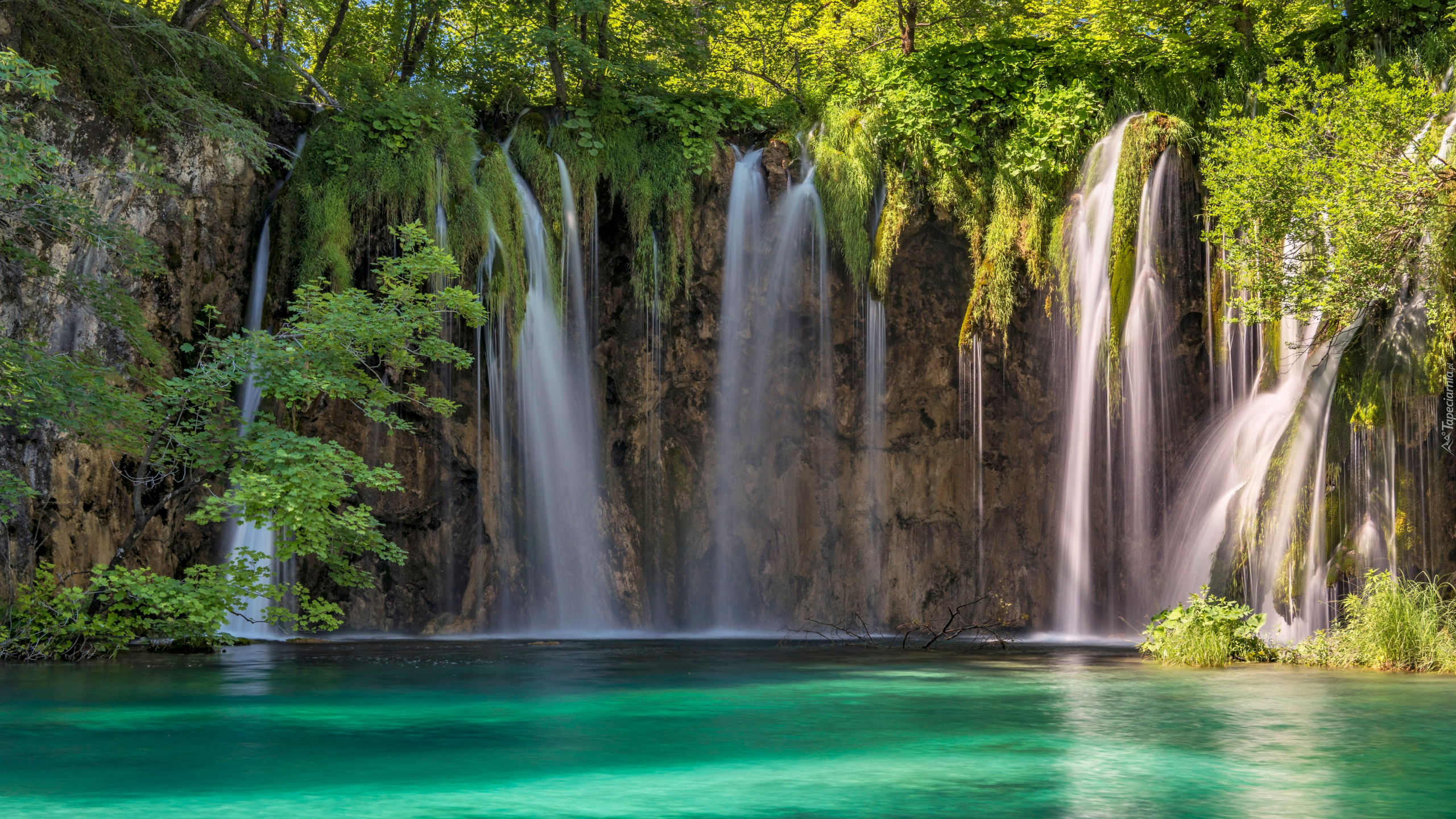 Edytor tapety: Wodospad na skale w Parku Narodowym Jezior Plitwickich