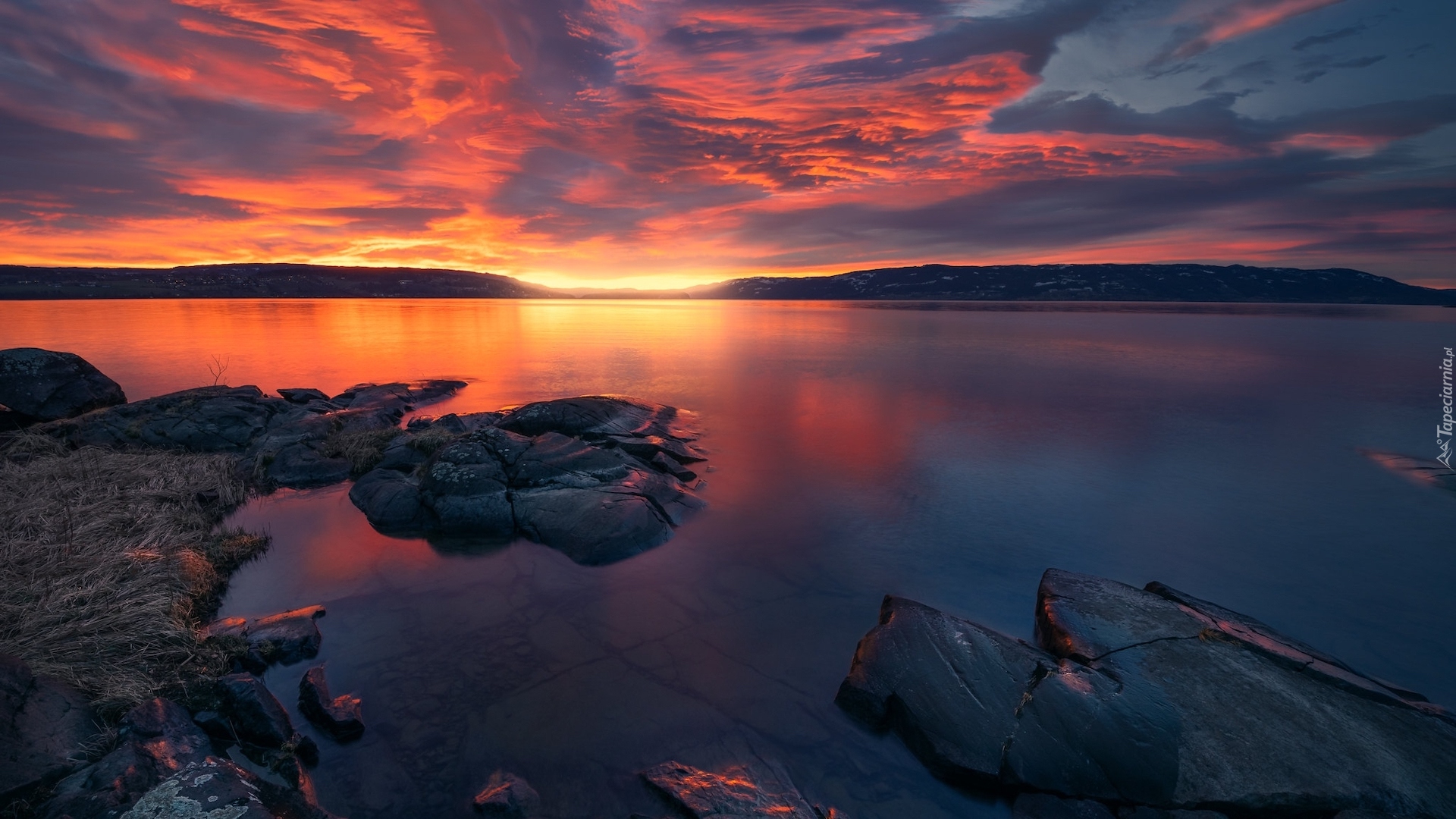 Edytor tapety: Wschód słońca nad jeziorem Tyrifjorden