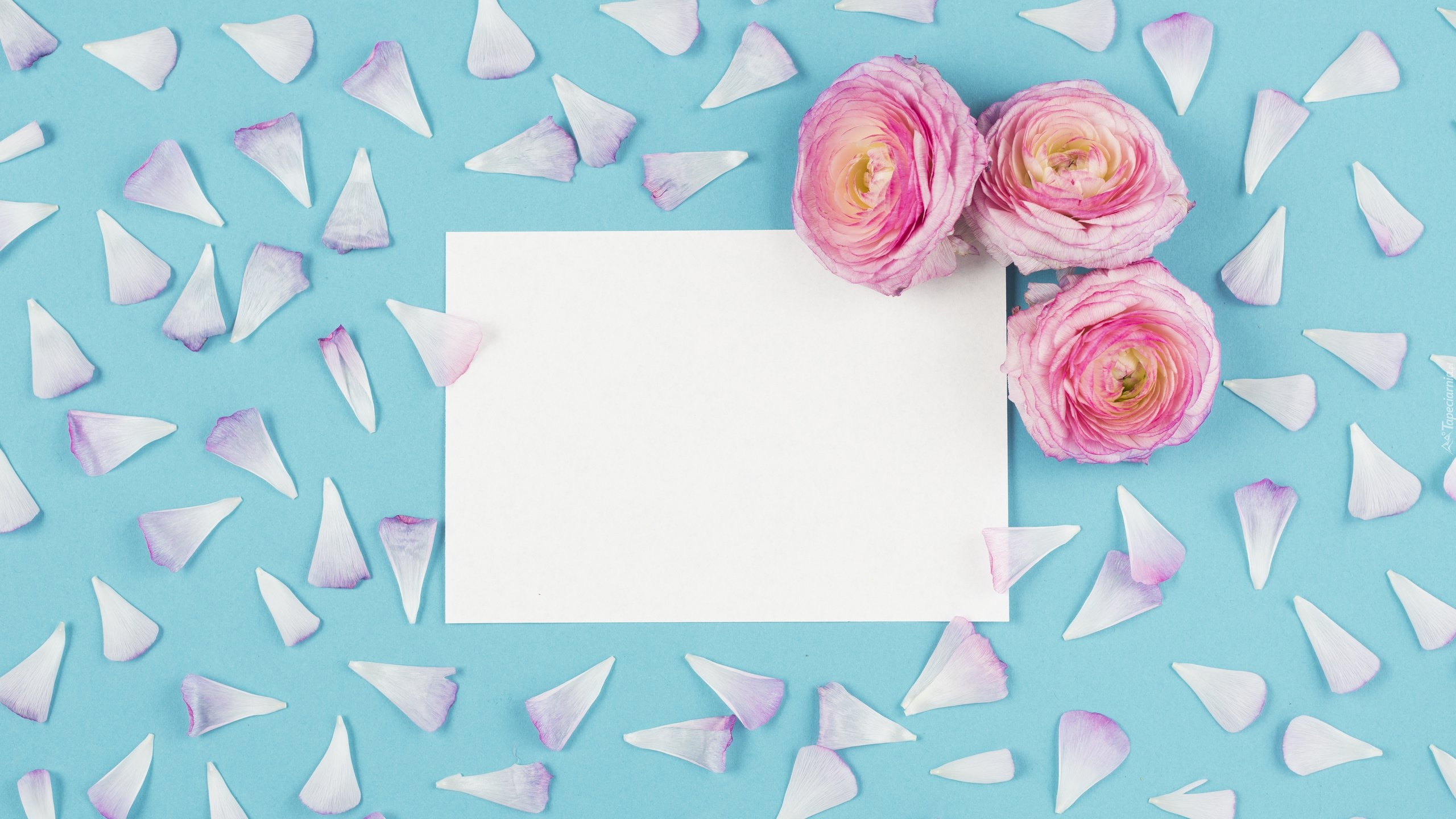 Edytor tapety: Jaskry przy kartce i płatki na niebieskim tle