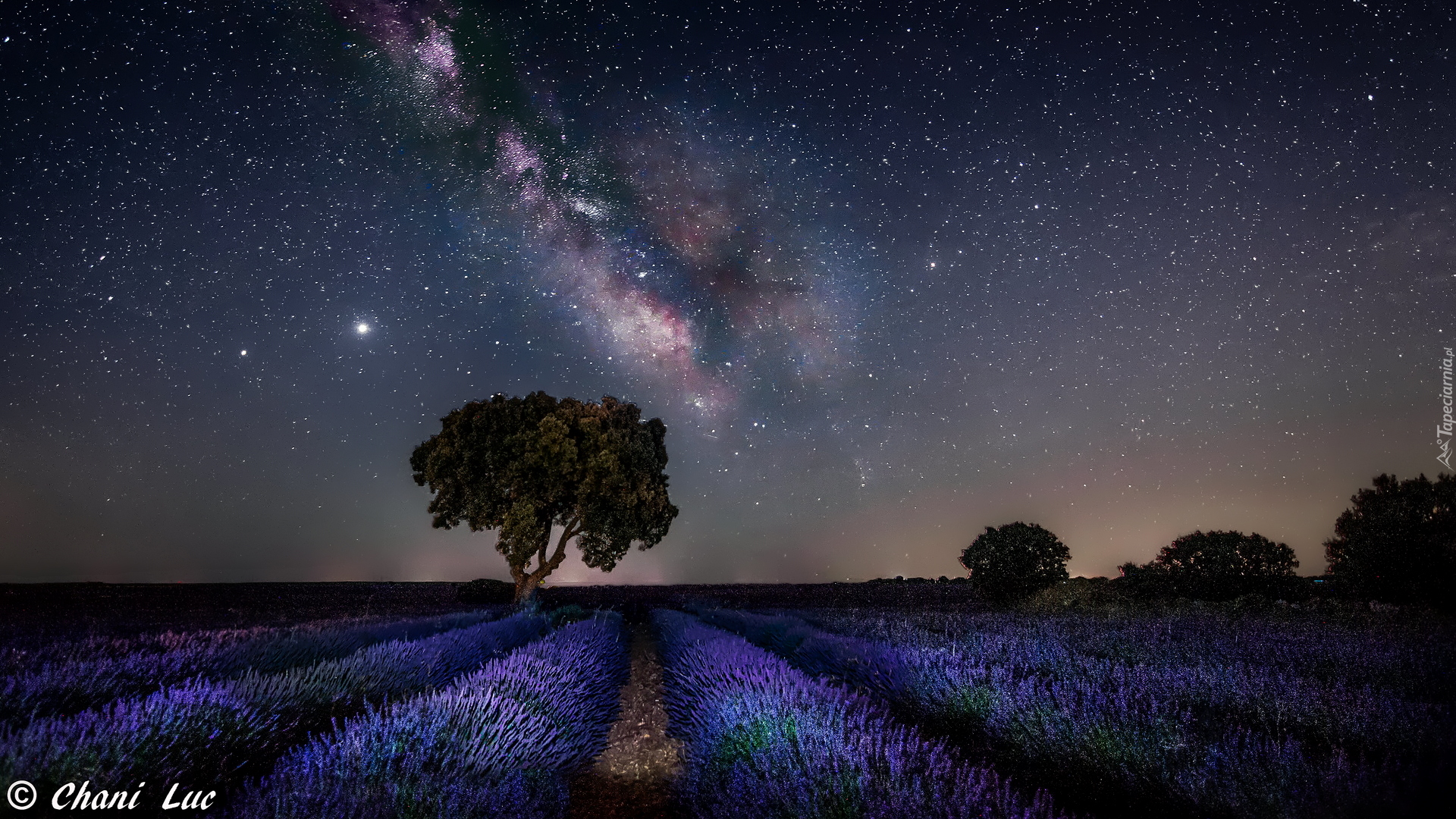 Edytor tapety: Droga Mleczna nad polem lawendy