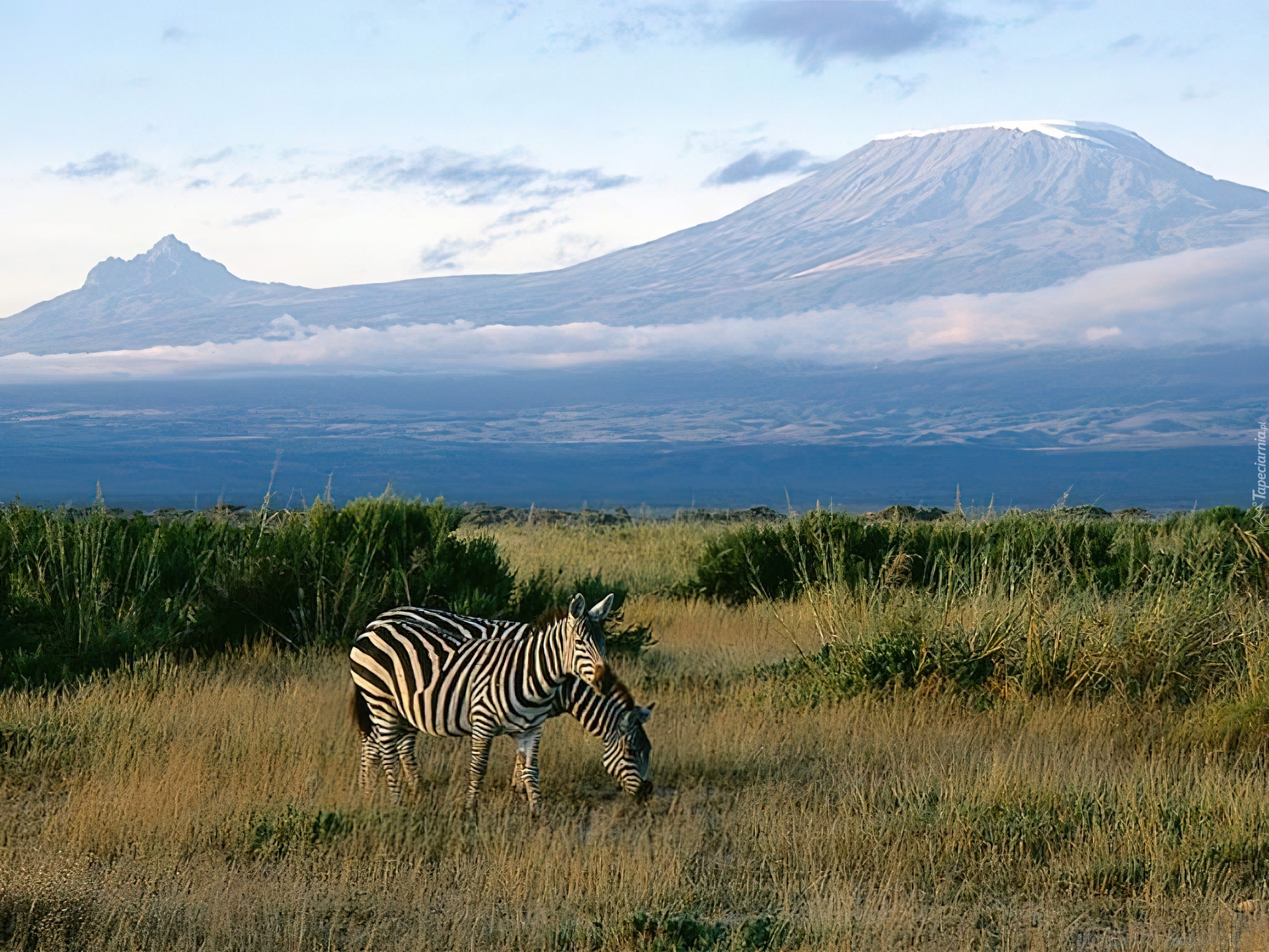 Edytor tapety: Zebra, góra, kilimandżaro