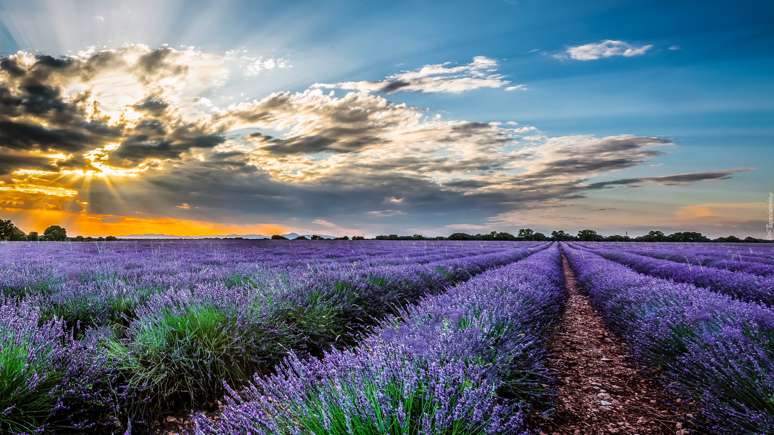 Edytor tapety: Pole lawendy o zachodzie słońca