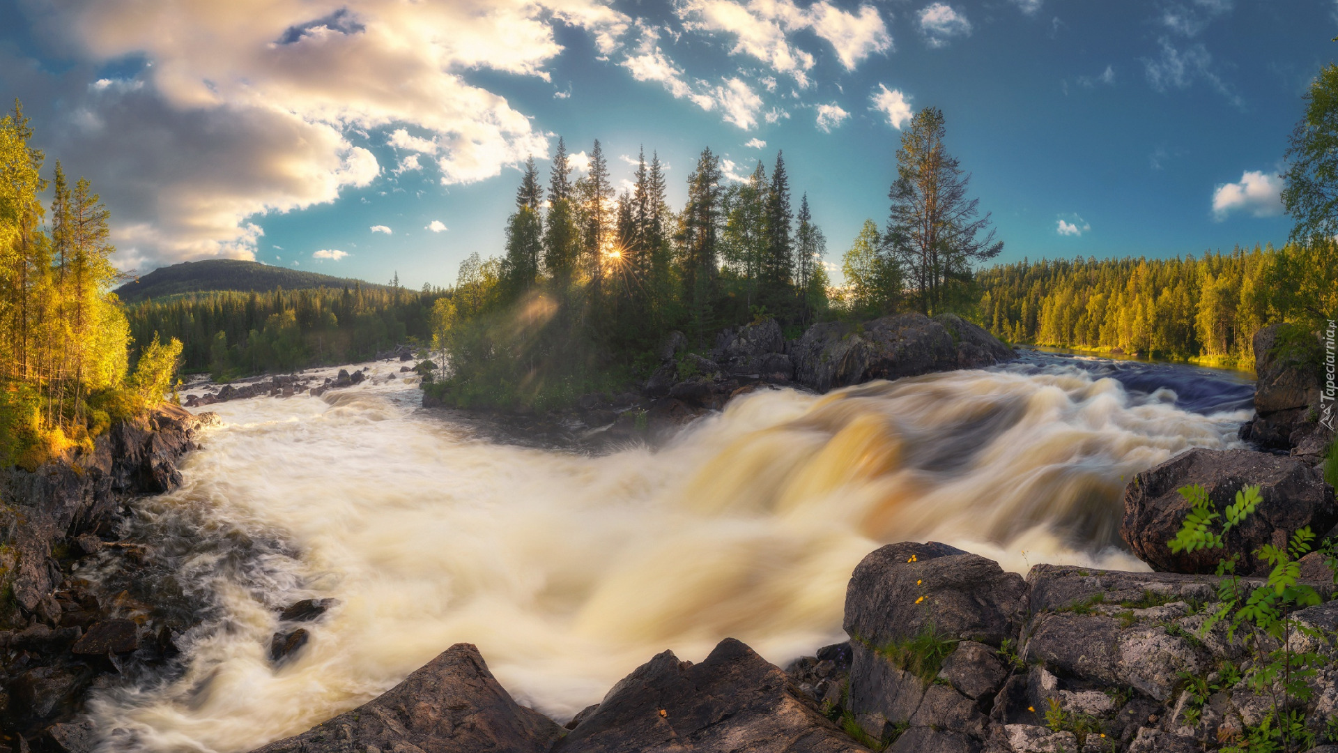 Edytor tapety: Drzewa na środku rwącej rzeki