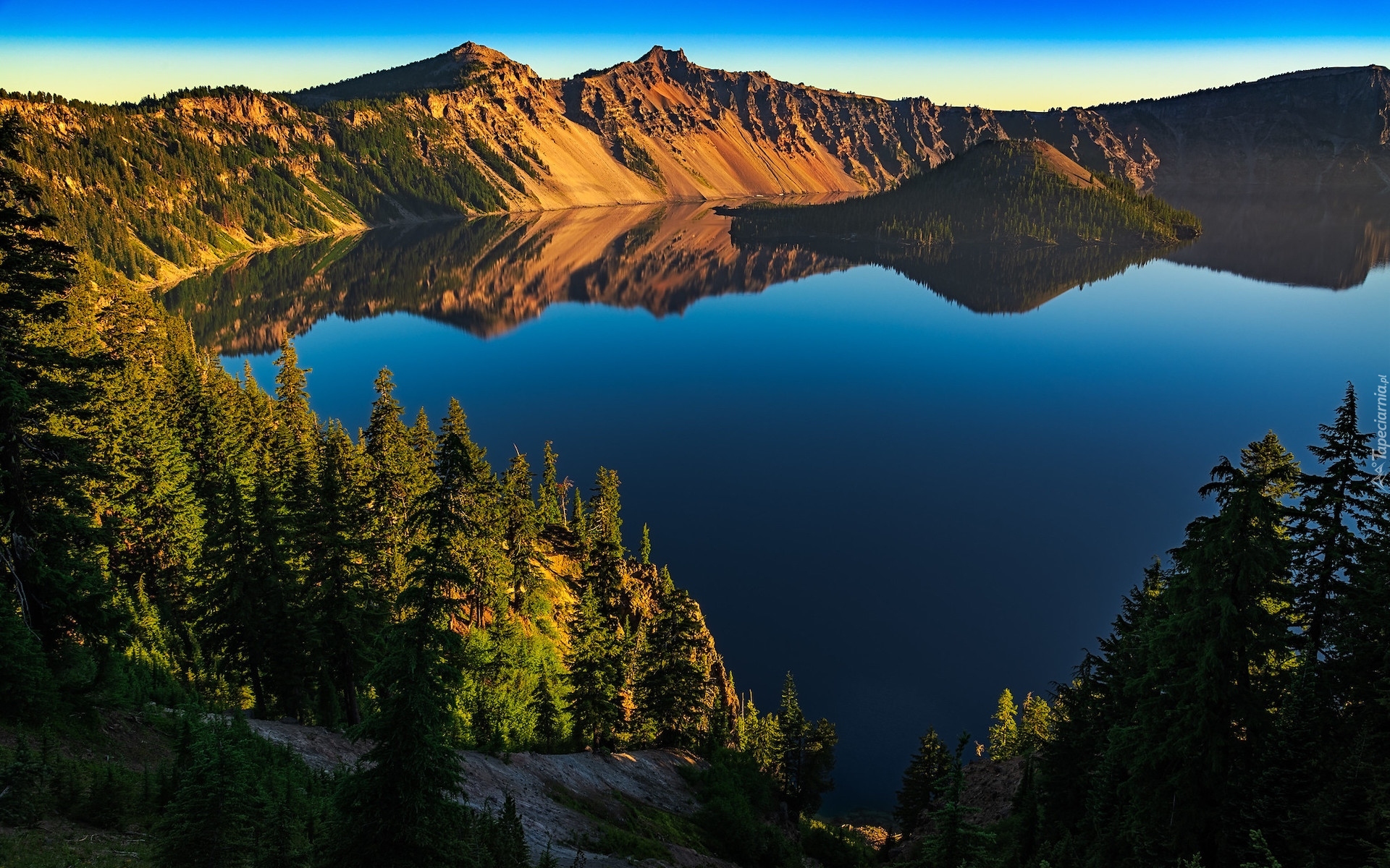 Edytor tapety: Jezioro Kraterowe i góry w stanie Oregon