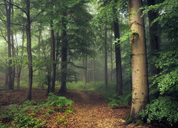 Edytor tapety: Opadłe liście na ścieżce w liściastym lesie