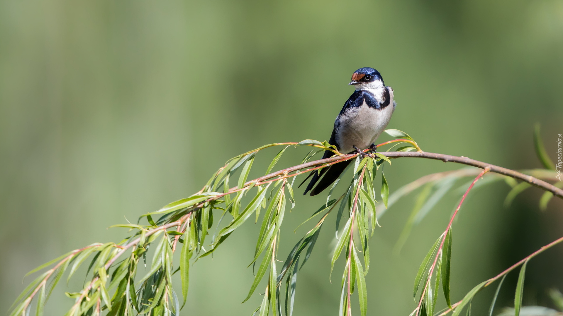 Edytor tapety: Jaskółka białogardła na gałązce wierzby