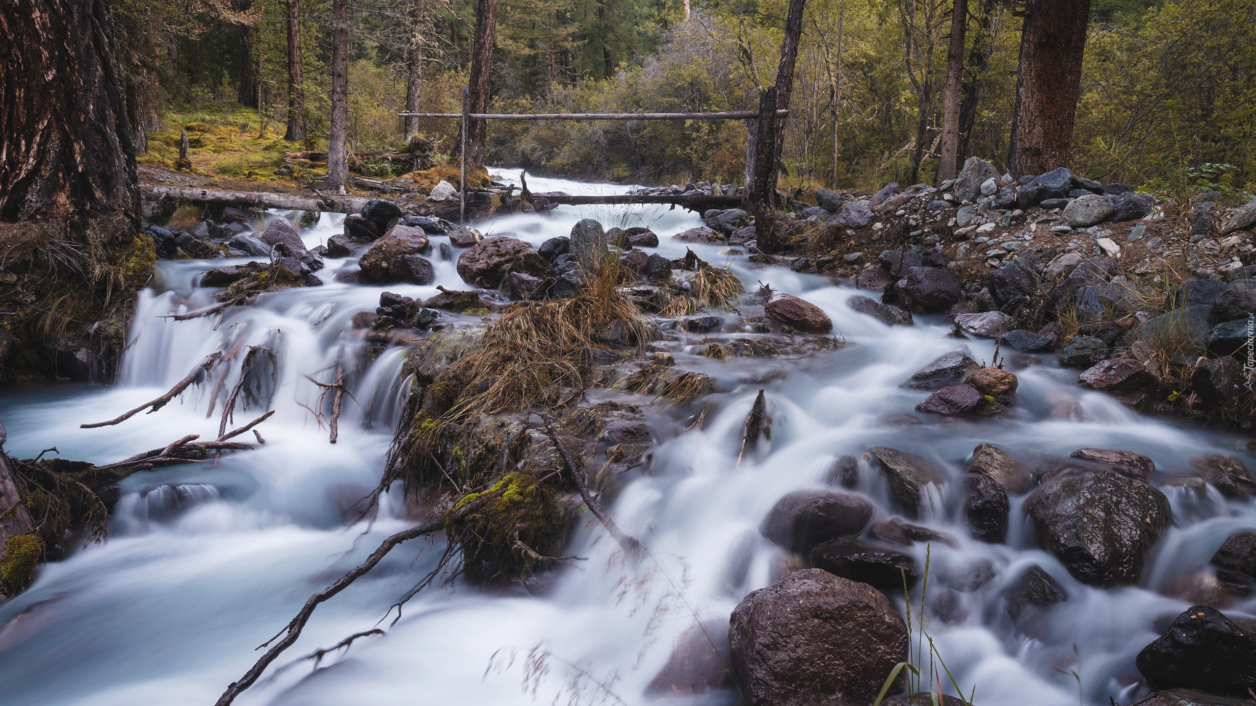 Edytor tapety: Kamienie w rwącej leśnej rzece