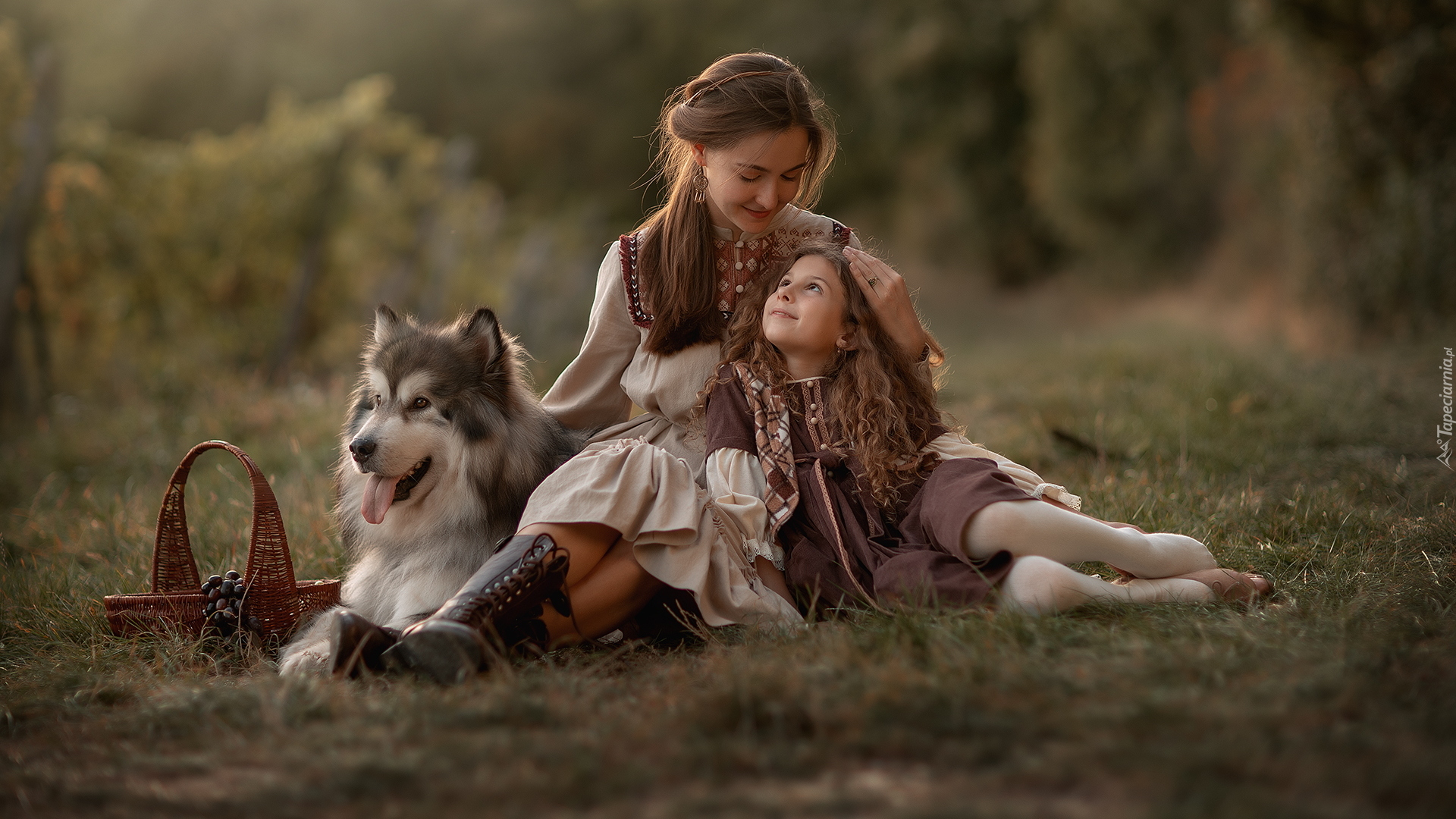 Edytor tapety: Alaskan malamute obok kobiety i dziewczynki