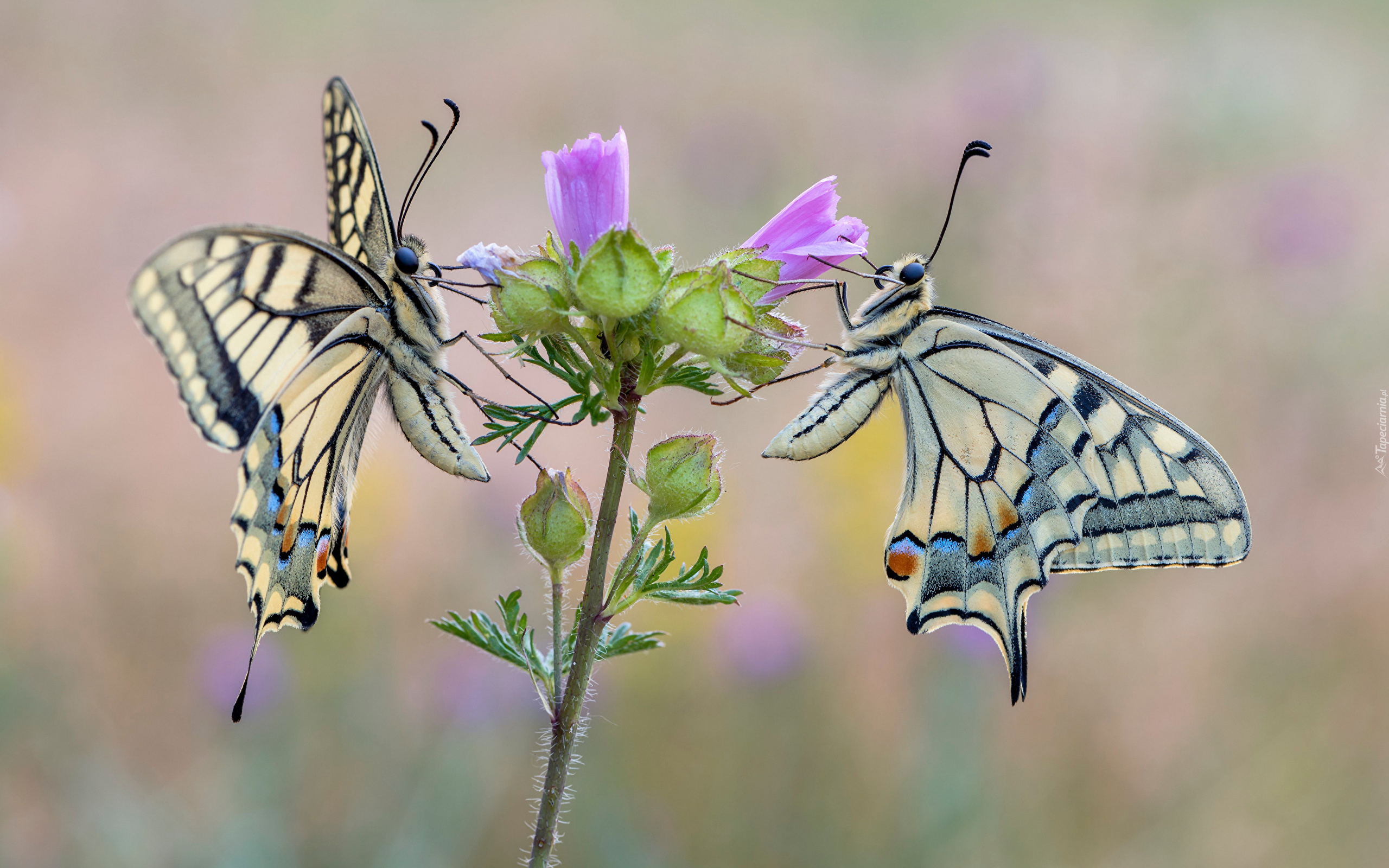 Edytor tapety: Dwa pazie królowej na różowych kwiatach