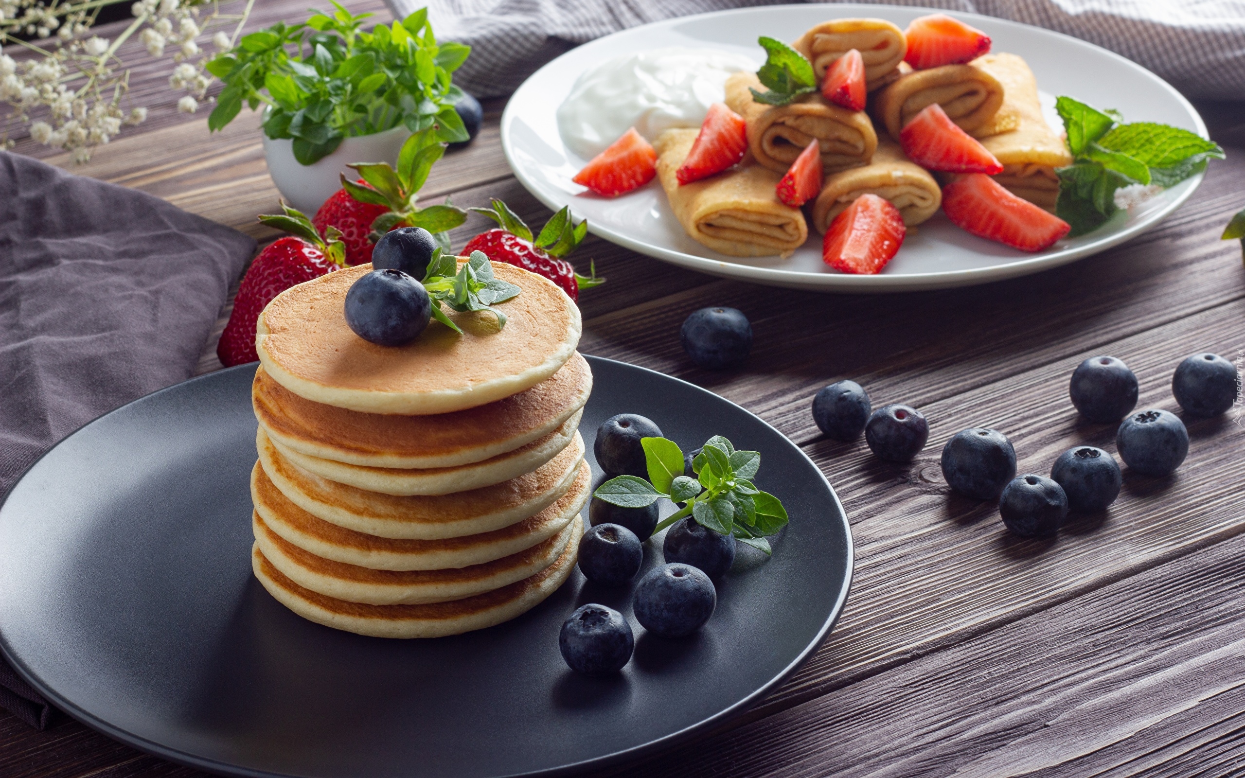 Edytor tapety: Naleśniki z borówkami i truskawkami