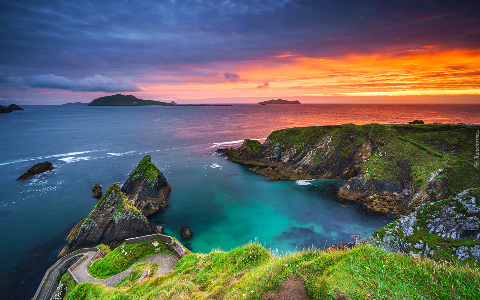 Edytor tapety: Zachód słońca nad wybrzeżem hrabstwa Kerry w Irlandii
