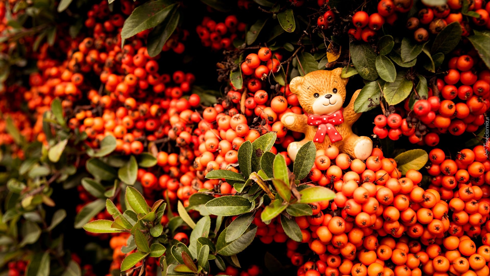 Edytor tapety: Miś na krzewie ognika szkarłatnego