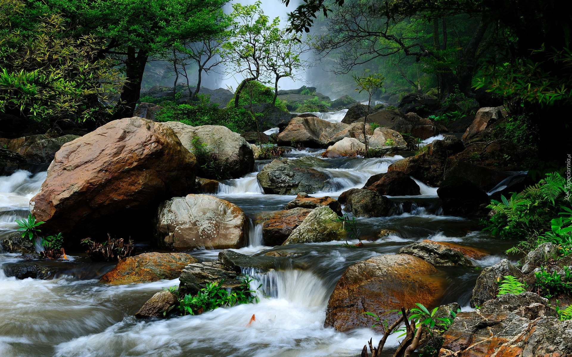 Edytor tapety: Głazy i kamienie na leśnej rzece