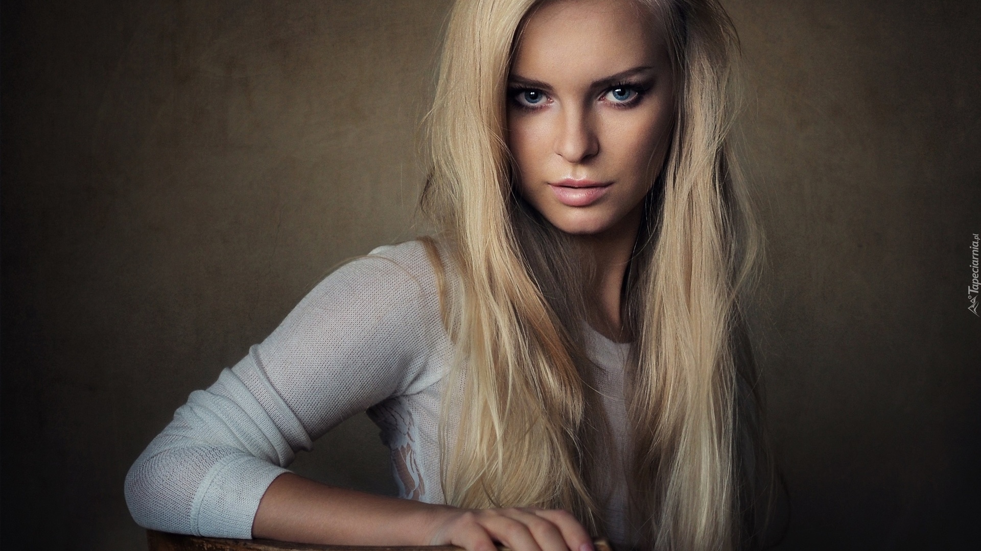 Edytor tapety: Długowłosa blondynka w dzianinowej bluzce