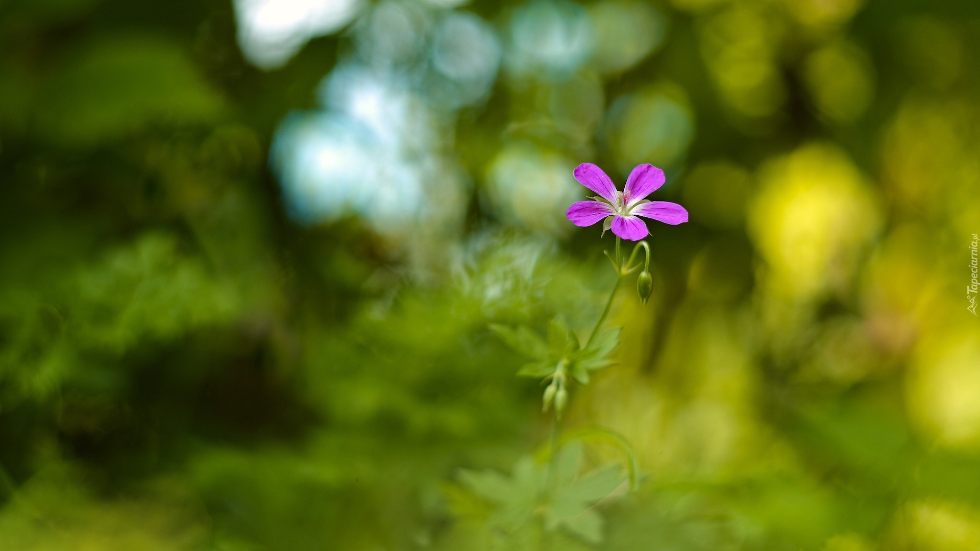 Edytor tapety: Fioletowy kwiatek na zielonym tle