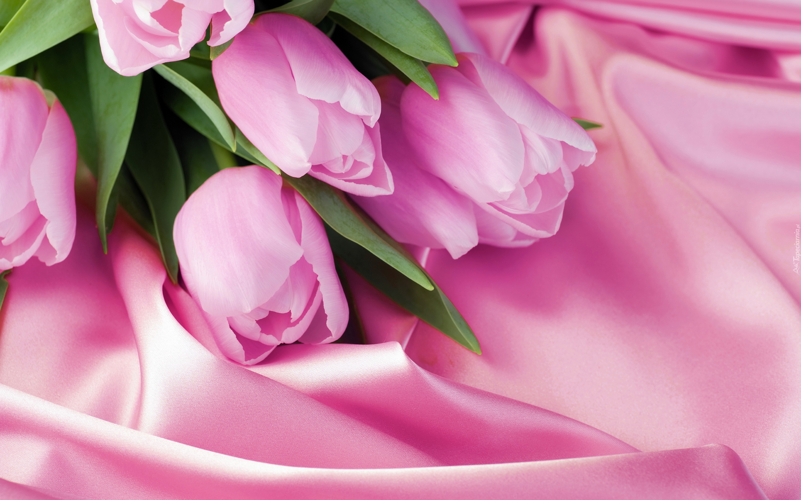 Edytor tapety: Różowe tulipany na różowym materiale