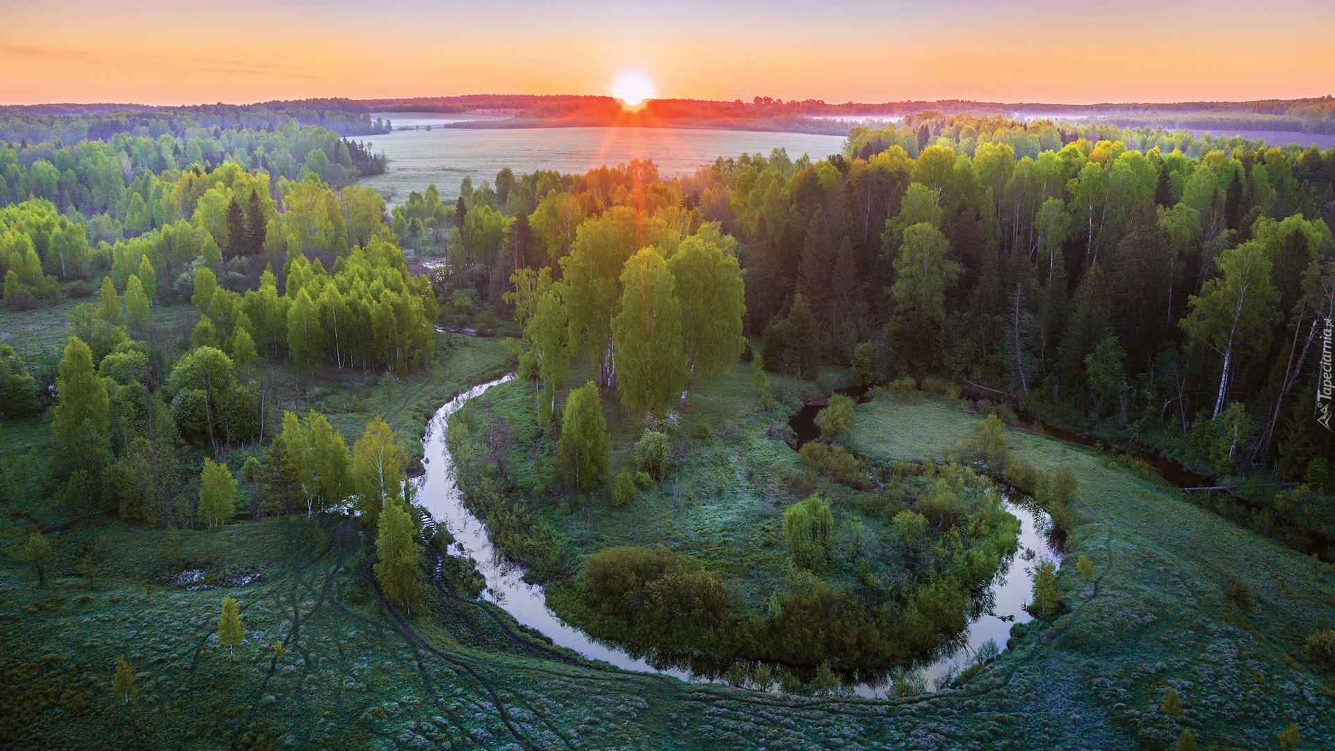 Edytor tapety: Widok na rzekę Uzola o wschodzie słońca