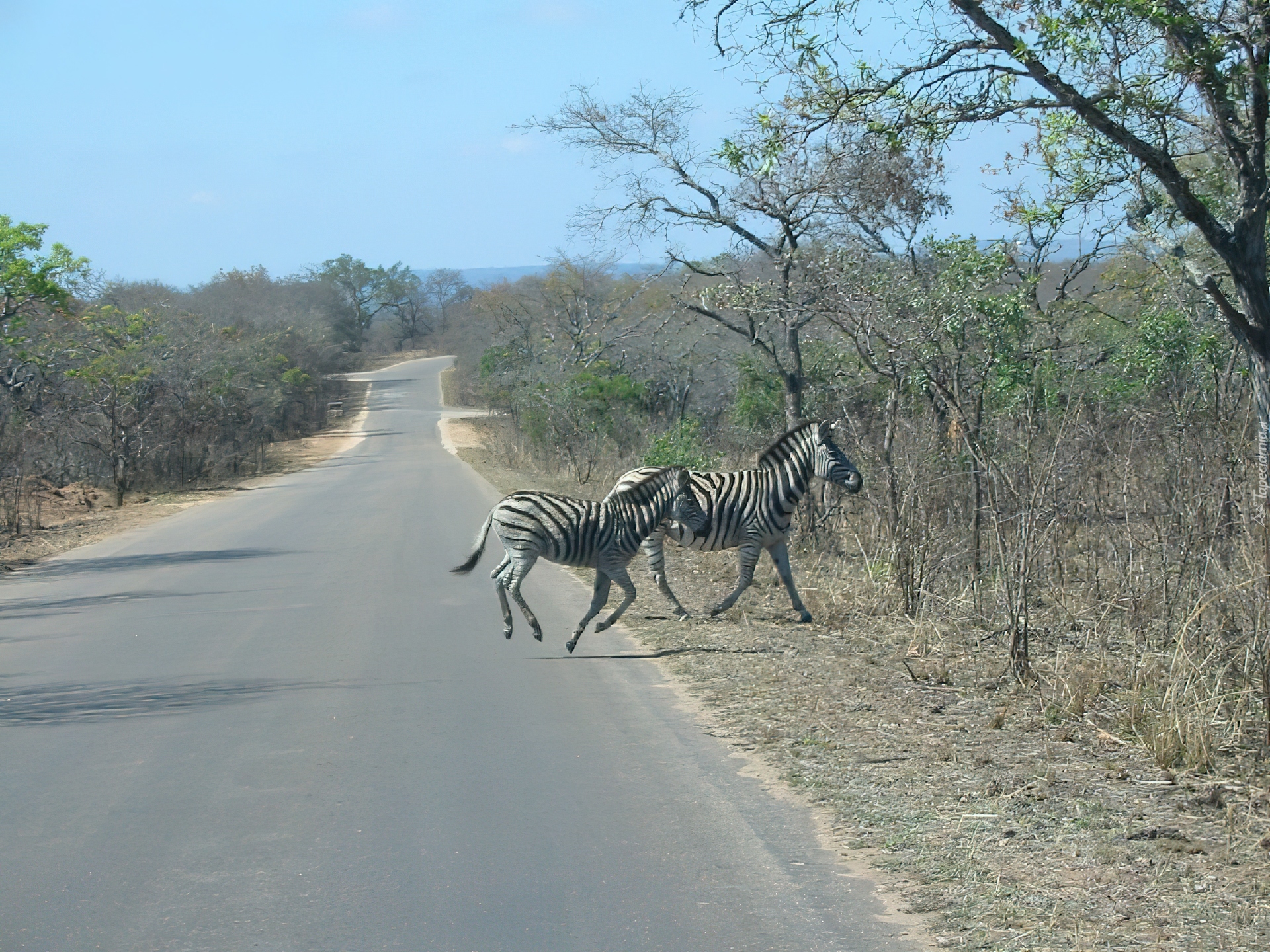 Edytor tapety: zebry, droga, drzewa