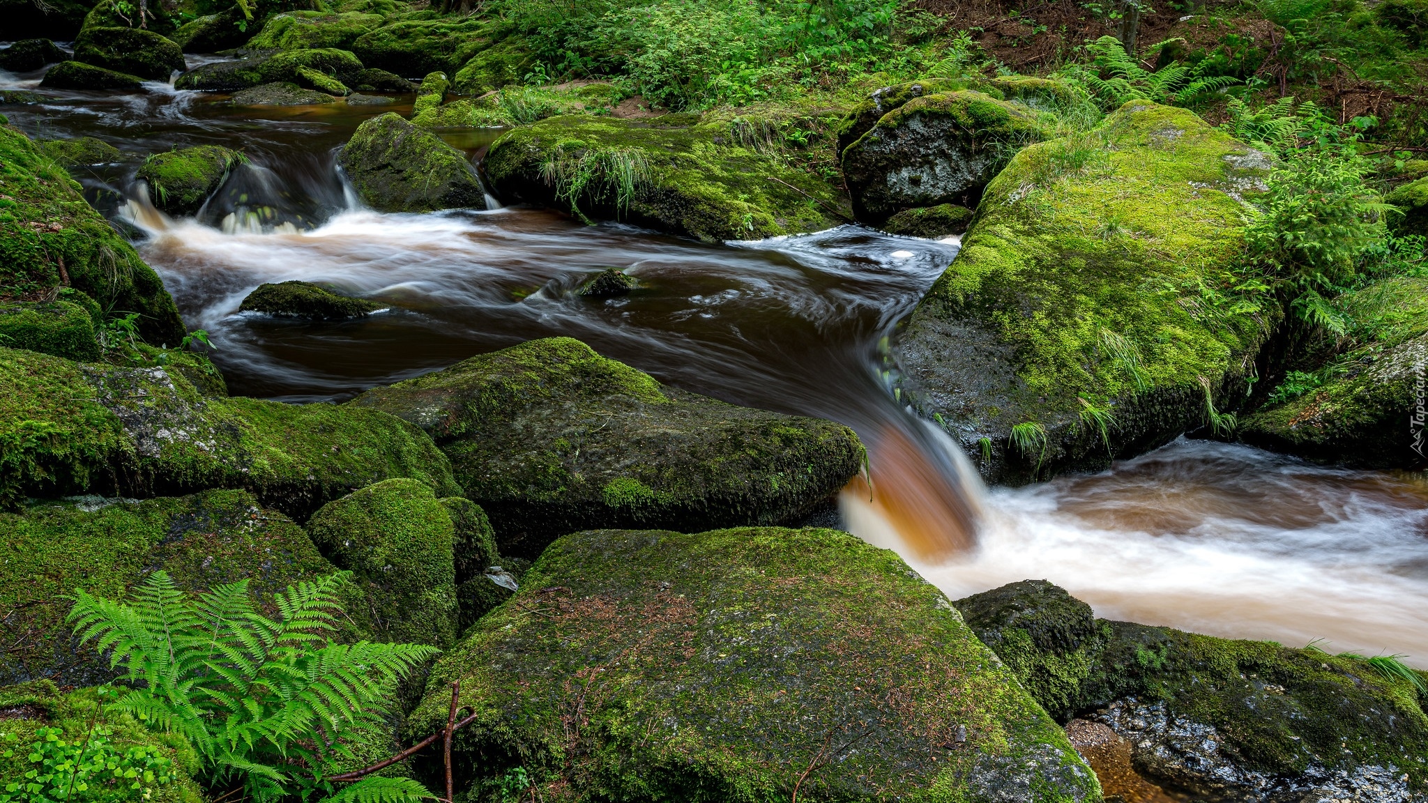 Edytor tapety: Omszałe kamienie na brzegu rzeki