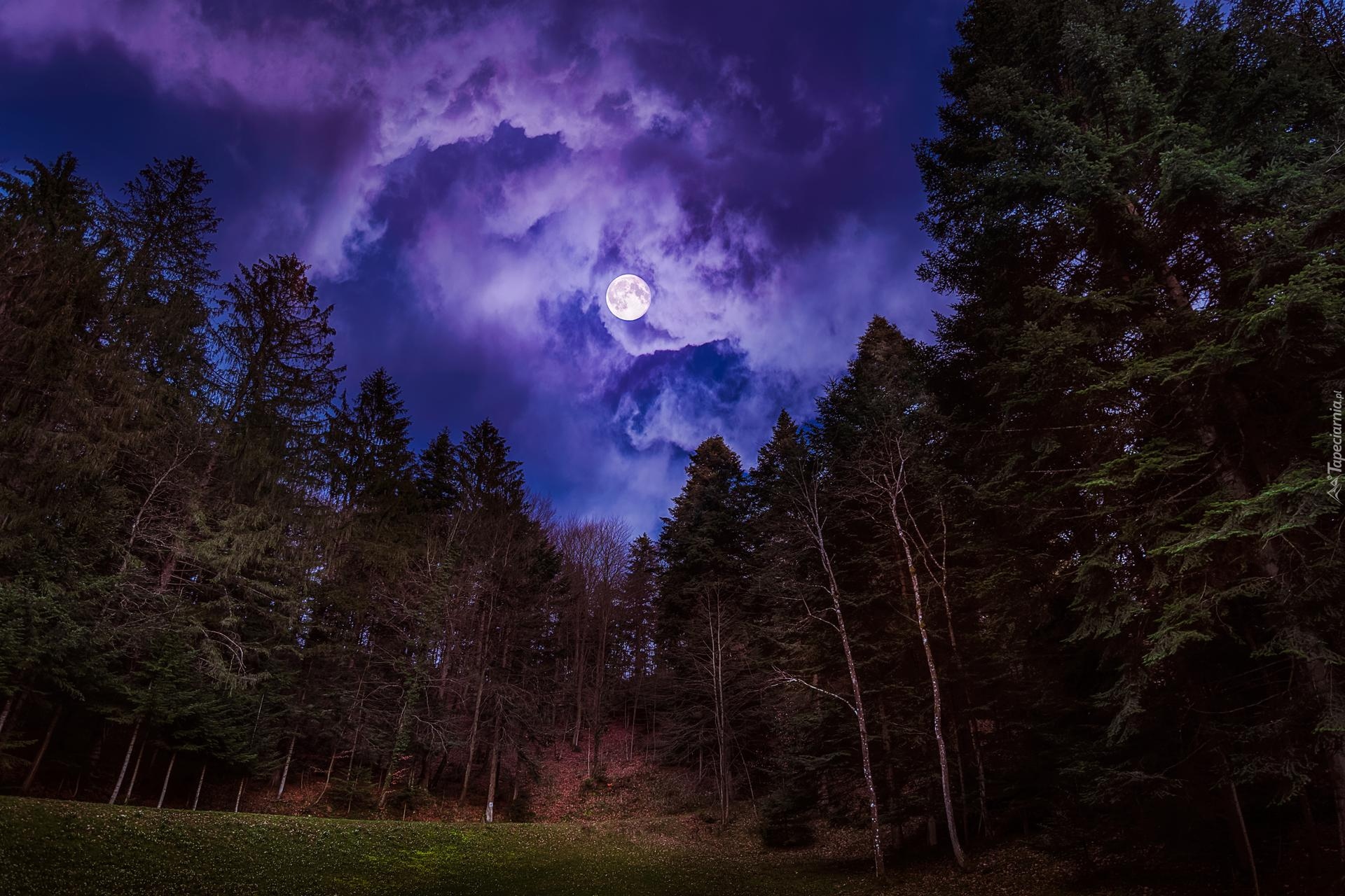Edytor tapety: Pełnia księżyca nad lasem