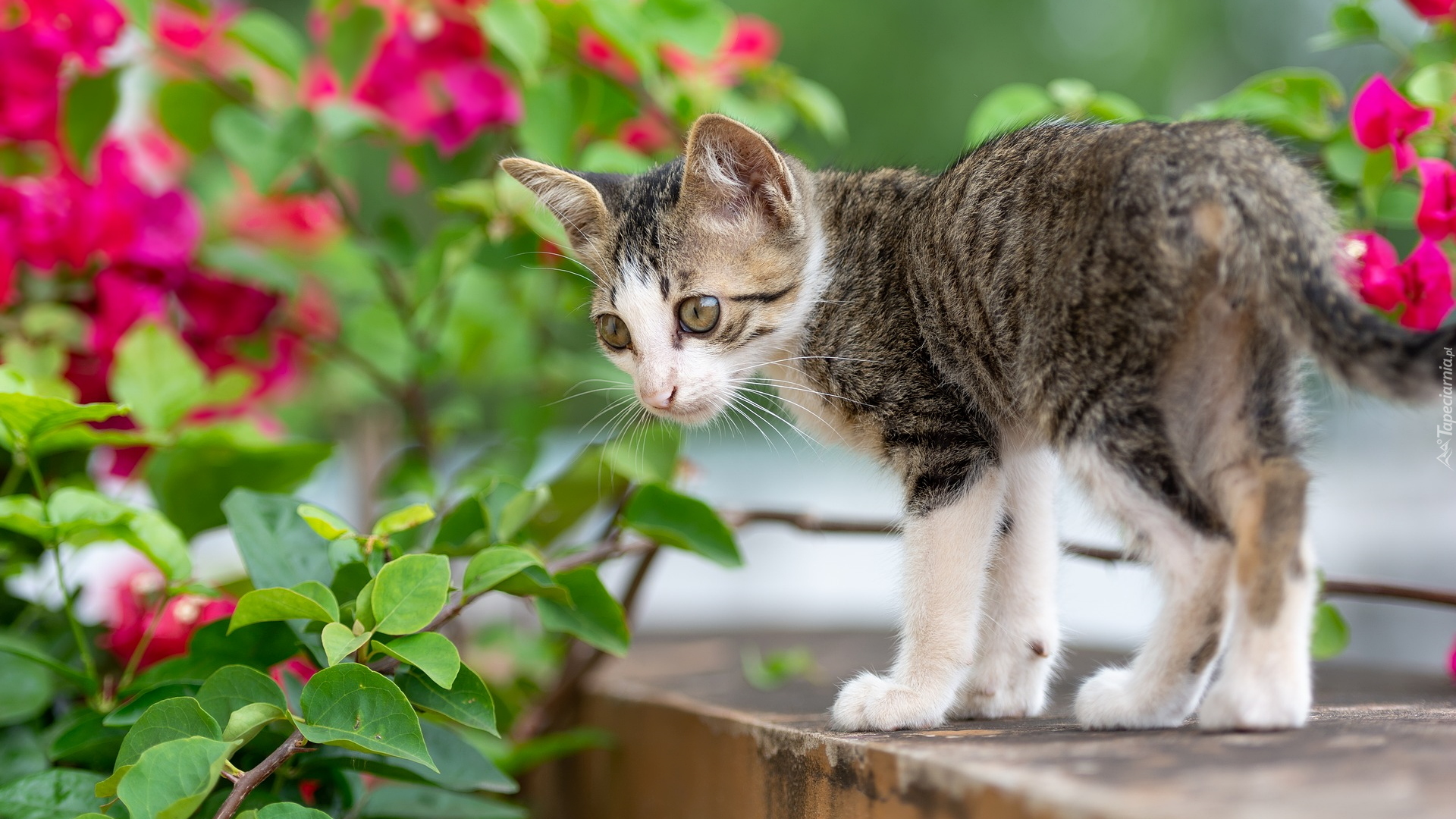 Edytor tapety: Mały szaro-biały kotek na murku