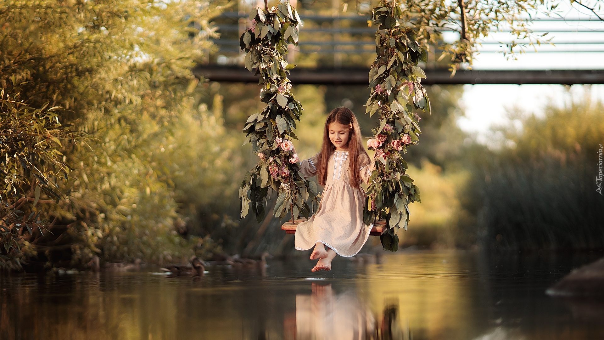 Edytor tapety: Dziewczynka na huśtawce
