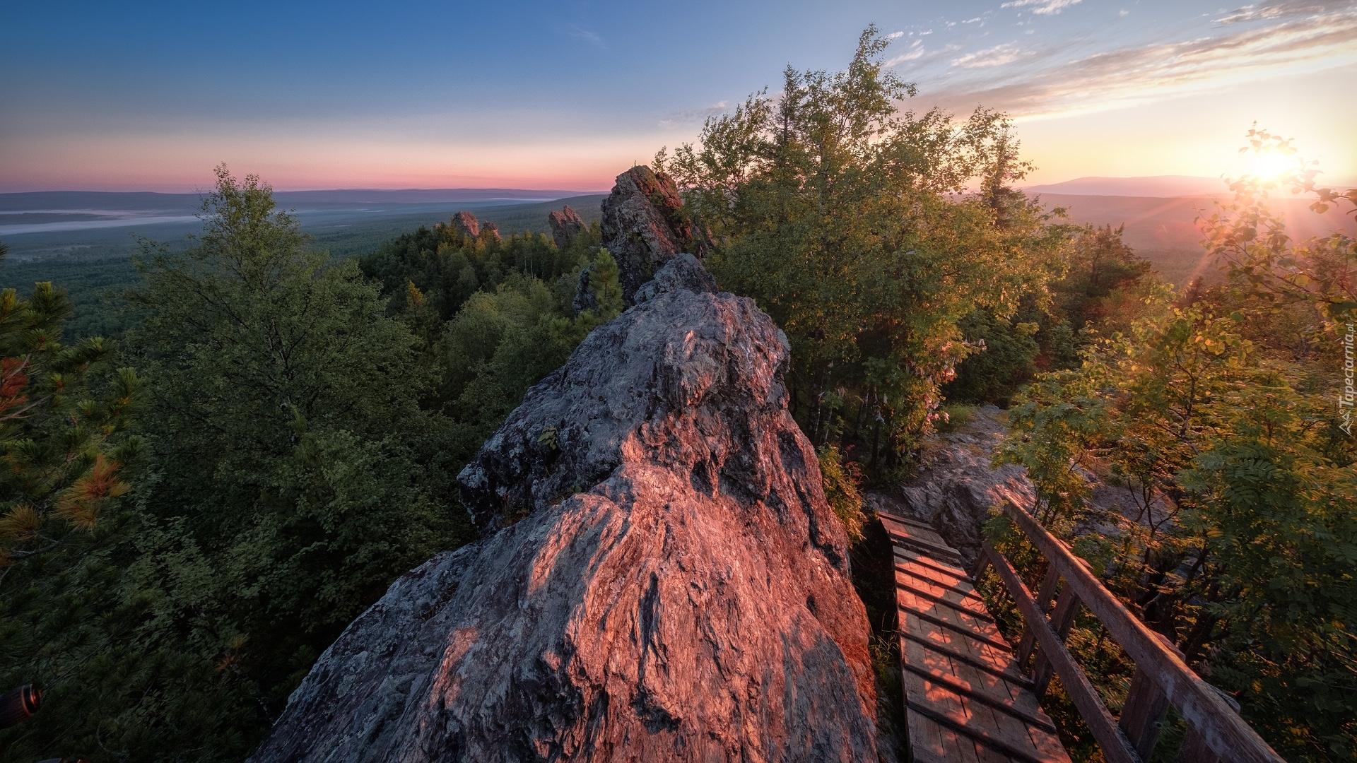 Edytor tapety: Góra Kolpaki w górach Uralu o świcie