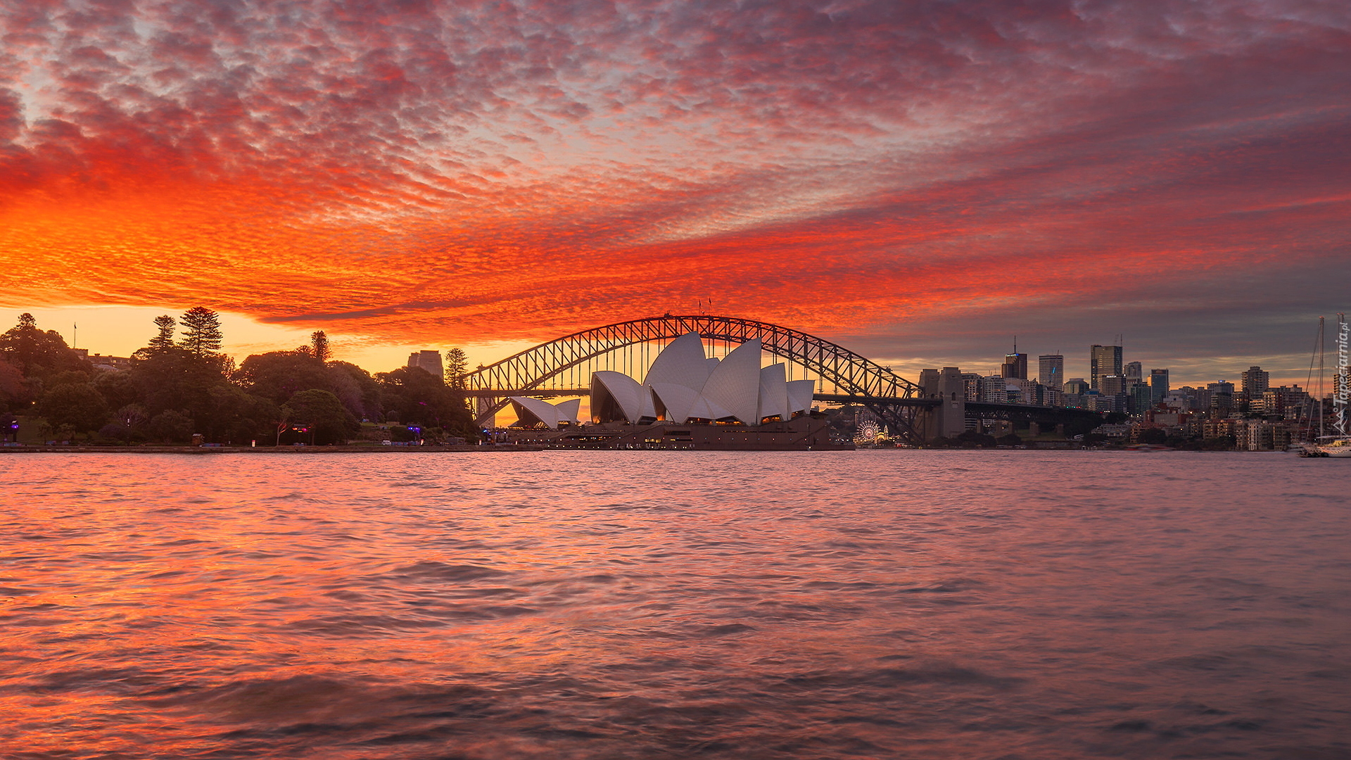 Edytor tapety: Wschód słońca nad Zatoką Port Jackson w Sydney