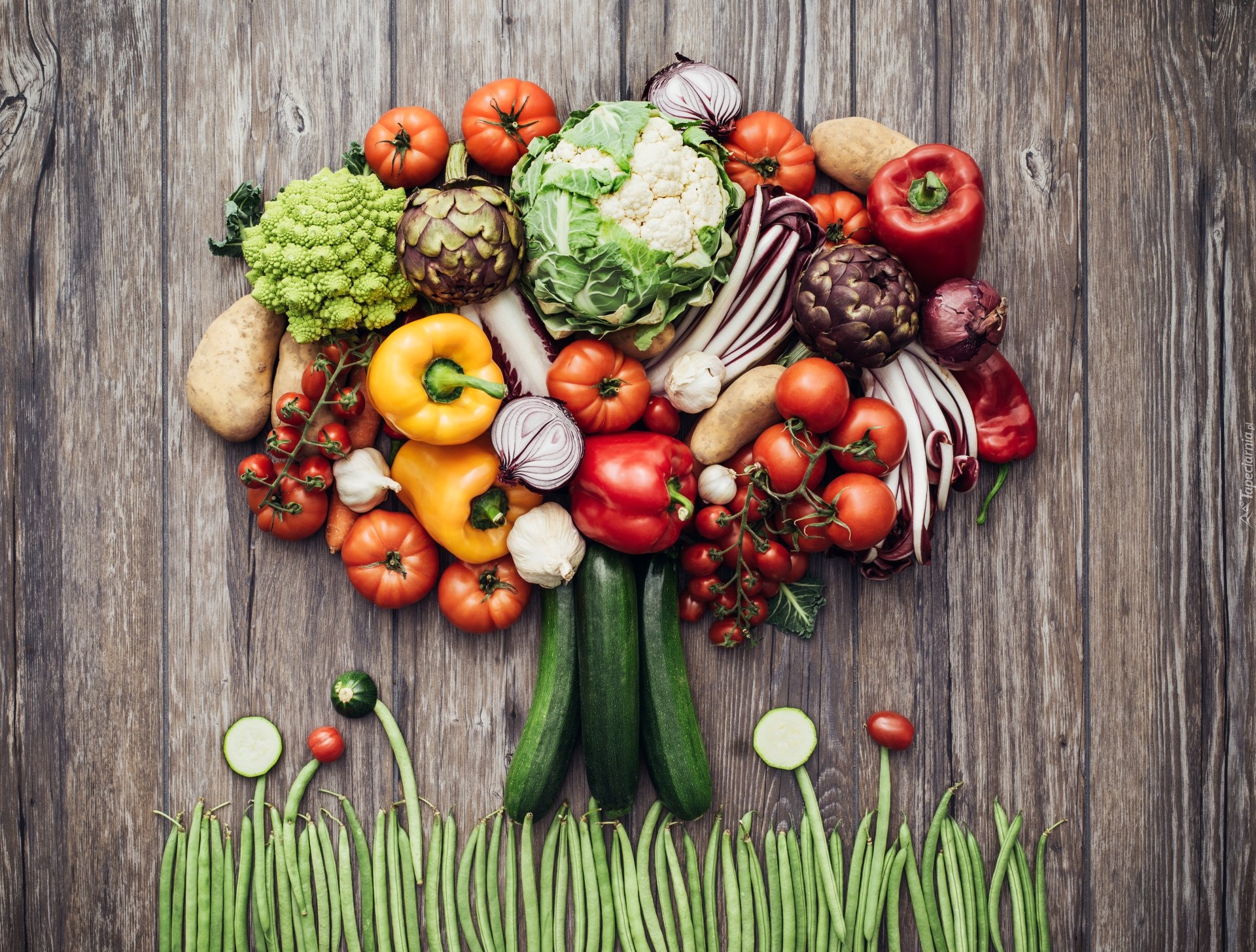 Edytor tapety: Warzywa ułożone w kształcie drzewa