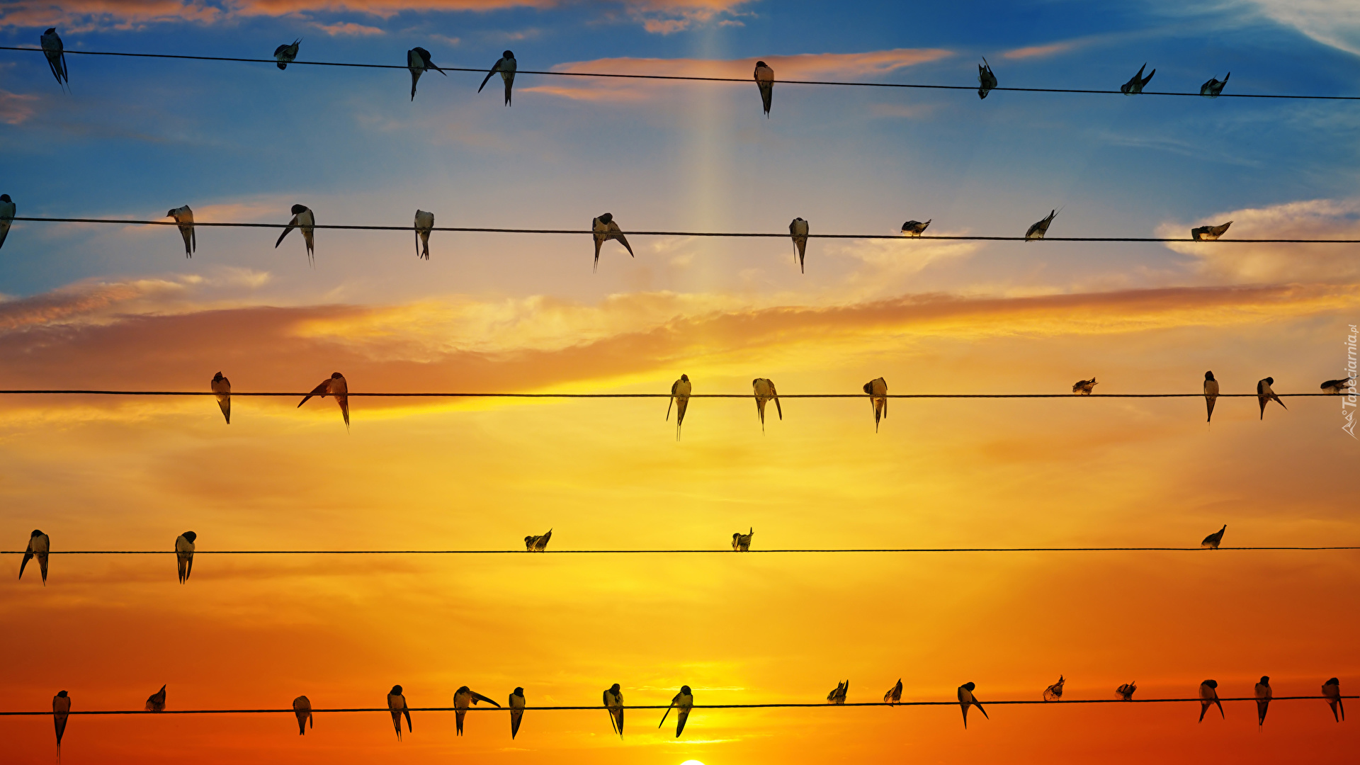 Edytor tapety: Jaskółki na przewodach elektrycznych