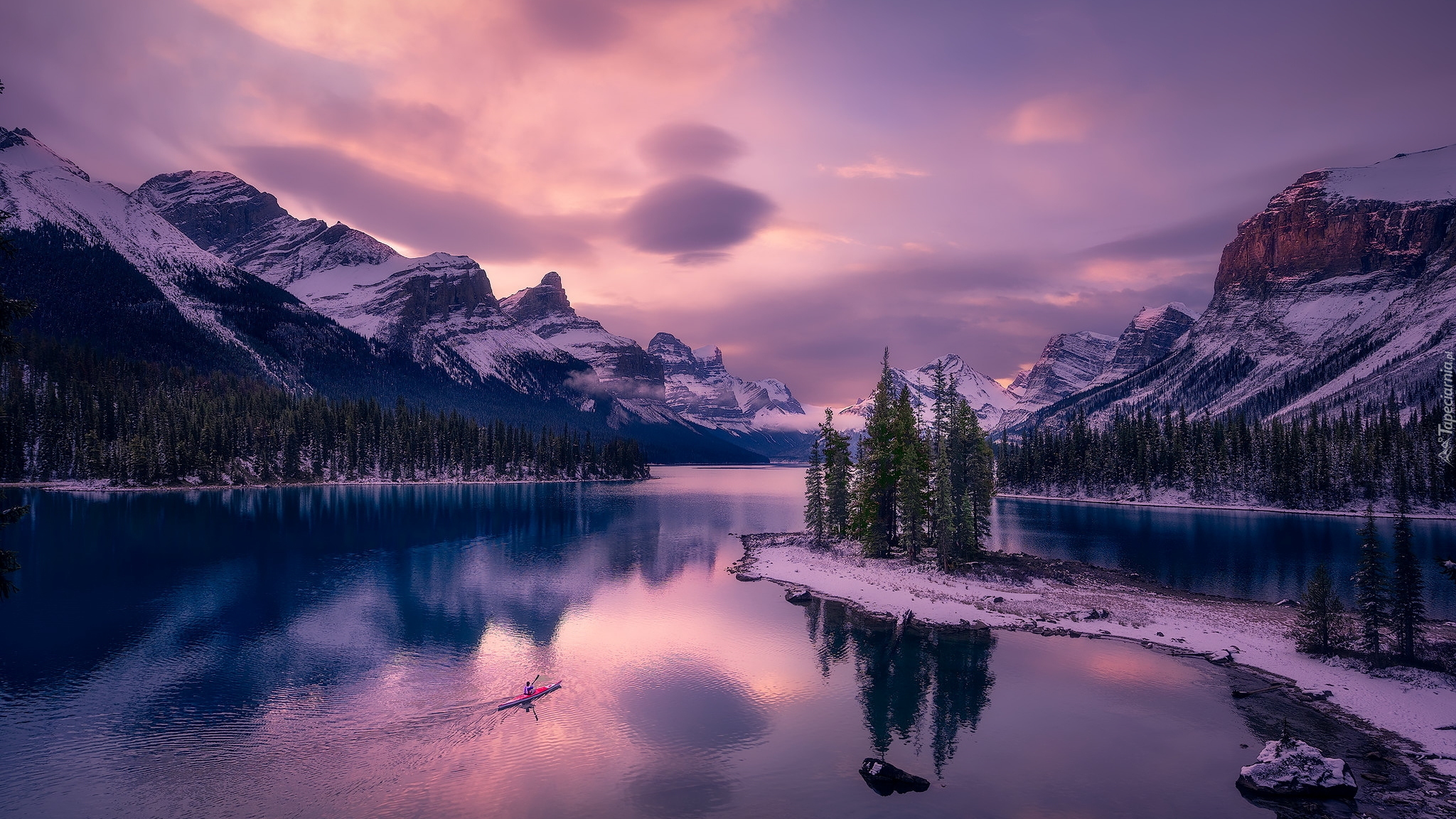 Edytor tapety: Jezioro Maligne Lake na tle gór zimą
