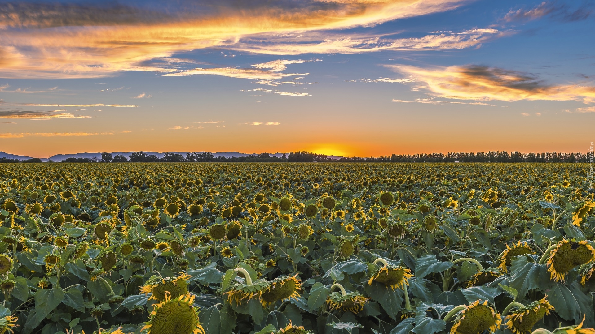 Edytor tapety: Słonecznikowe pole o wschodzie słońca