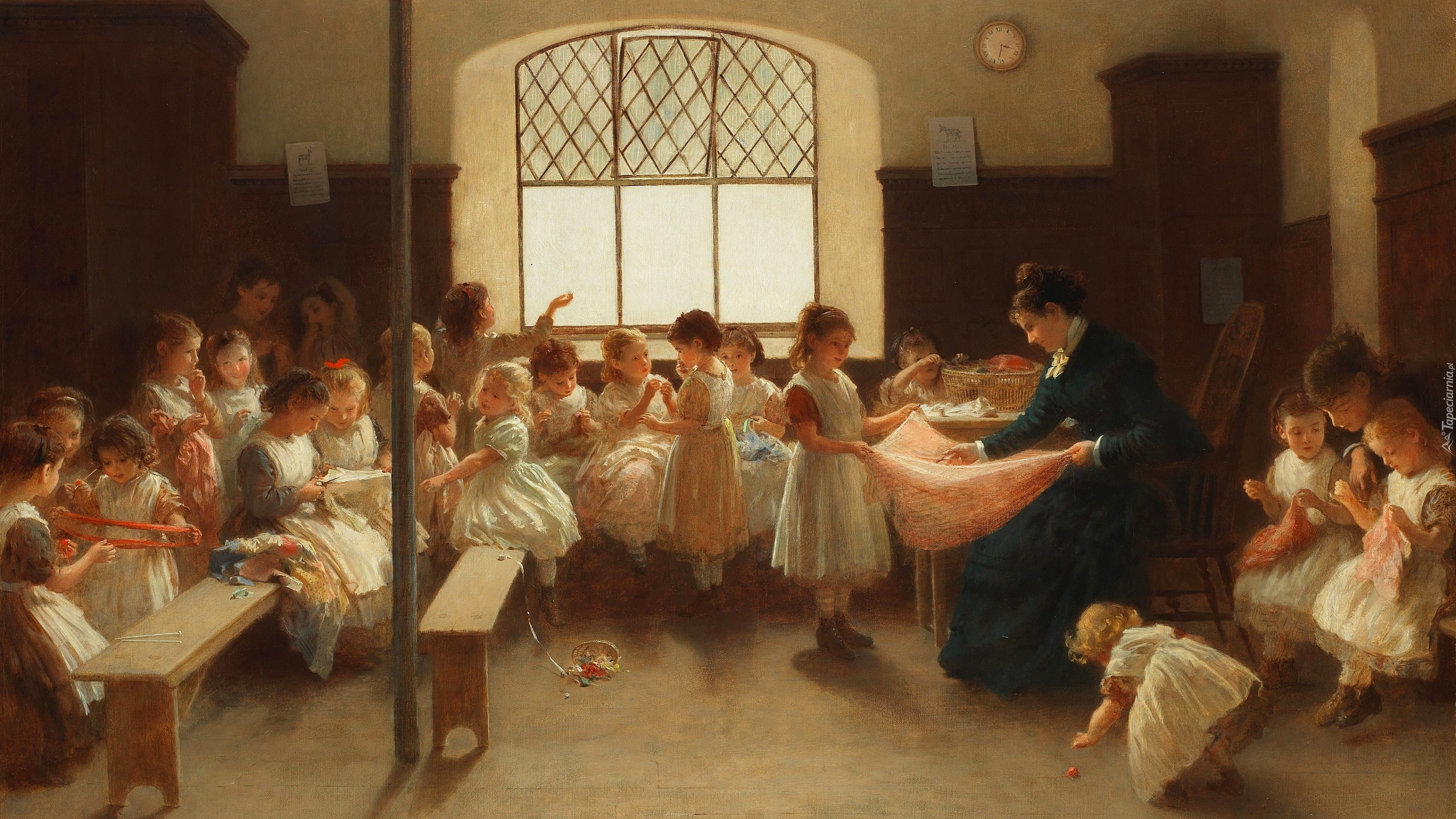 Edytor tapety: Obraz The Sewing Class Johna Morgana