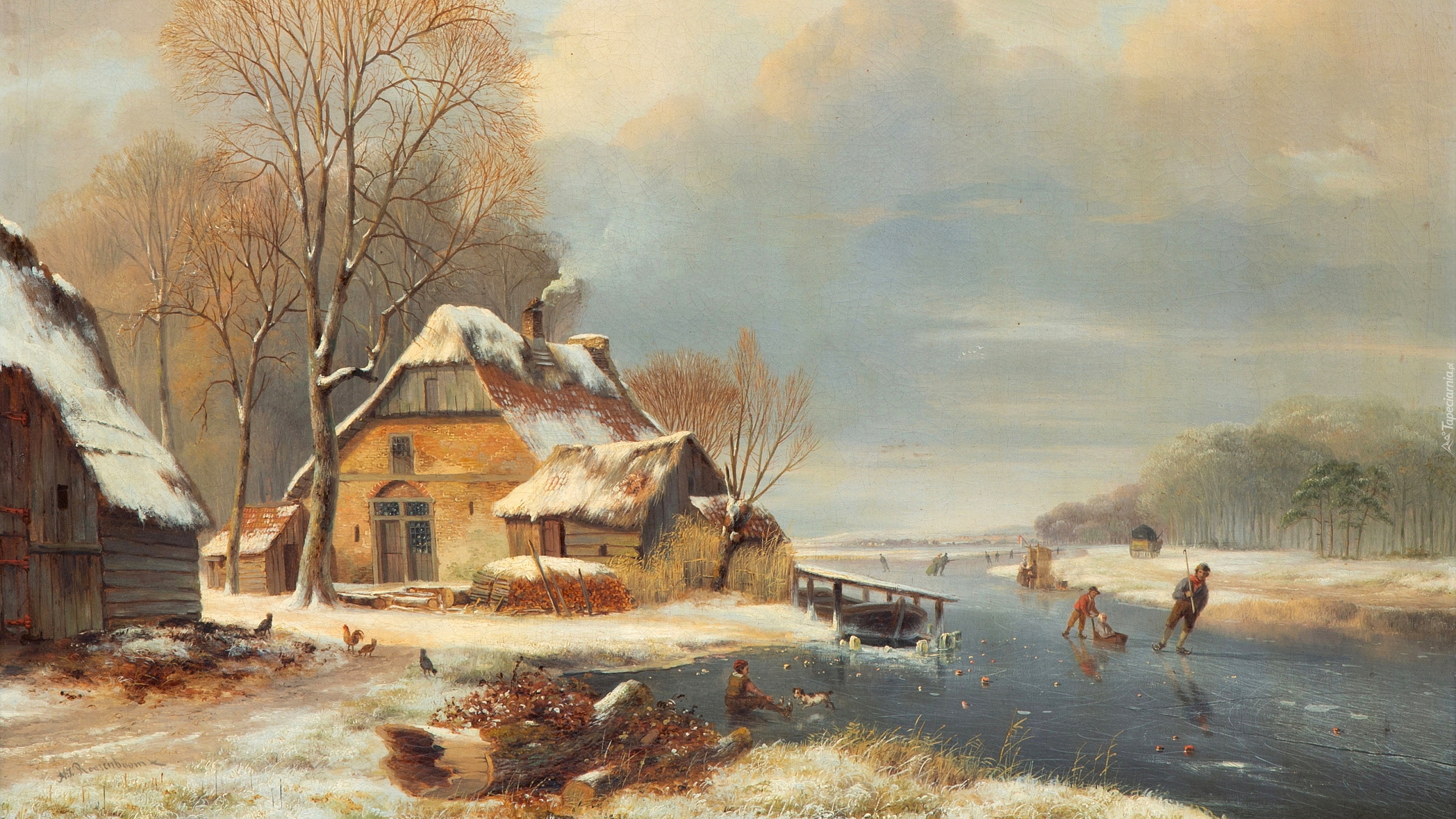Edytor tapety: Domy nad zamarzniętą rzeką