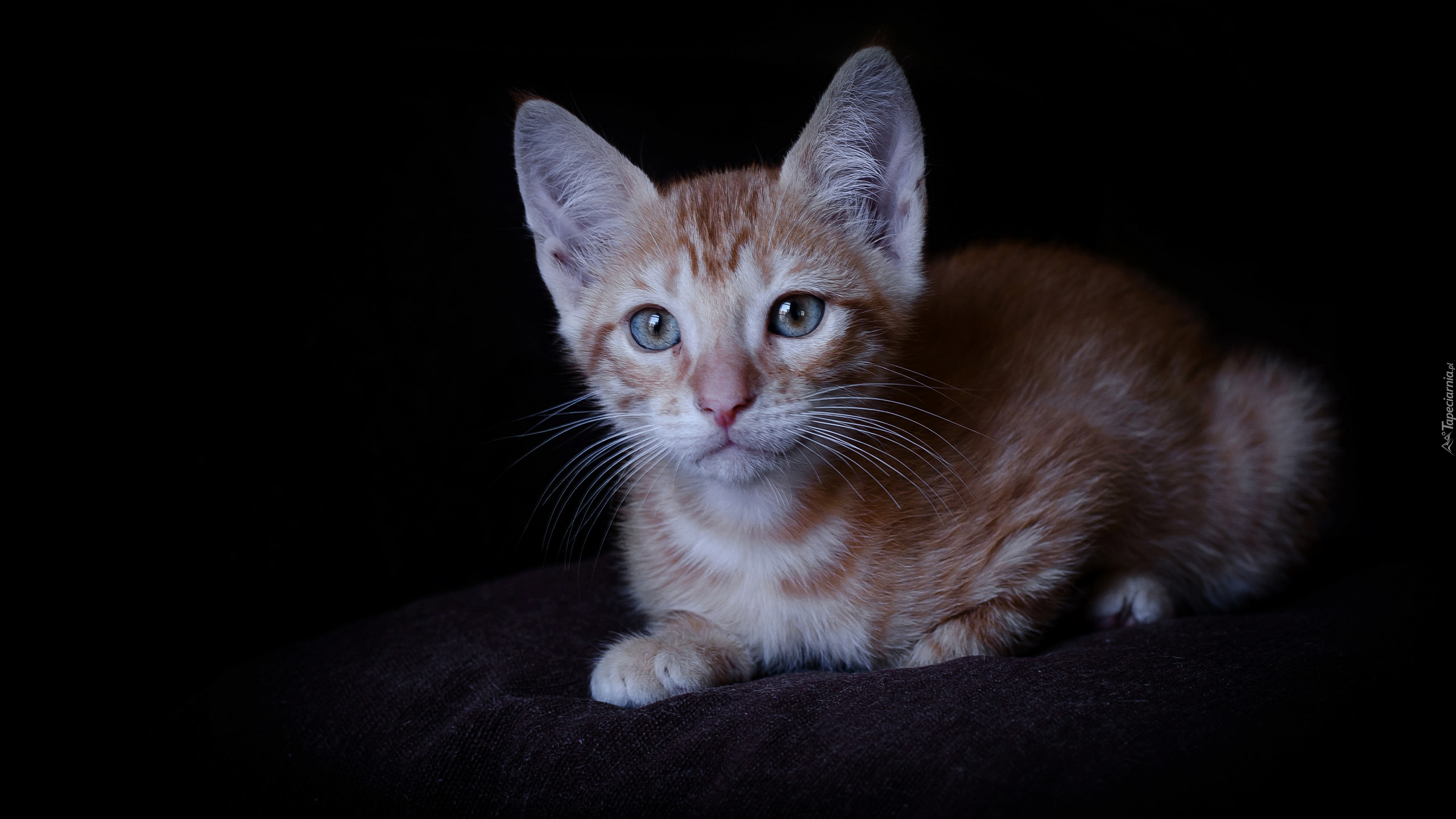 Edytor tapety: Rudy kotek na ciemnym tle