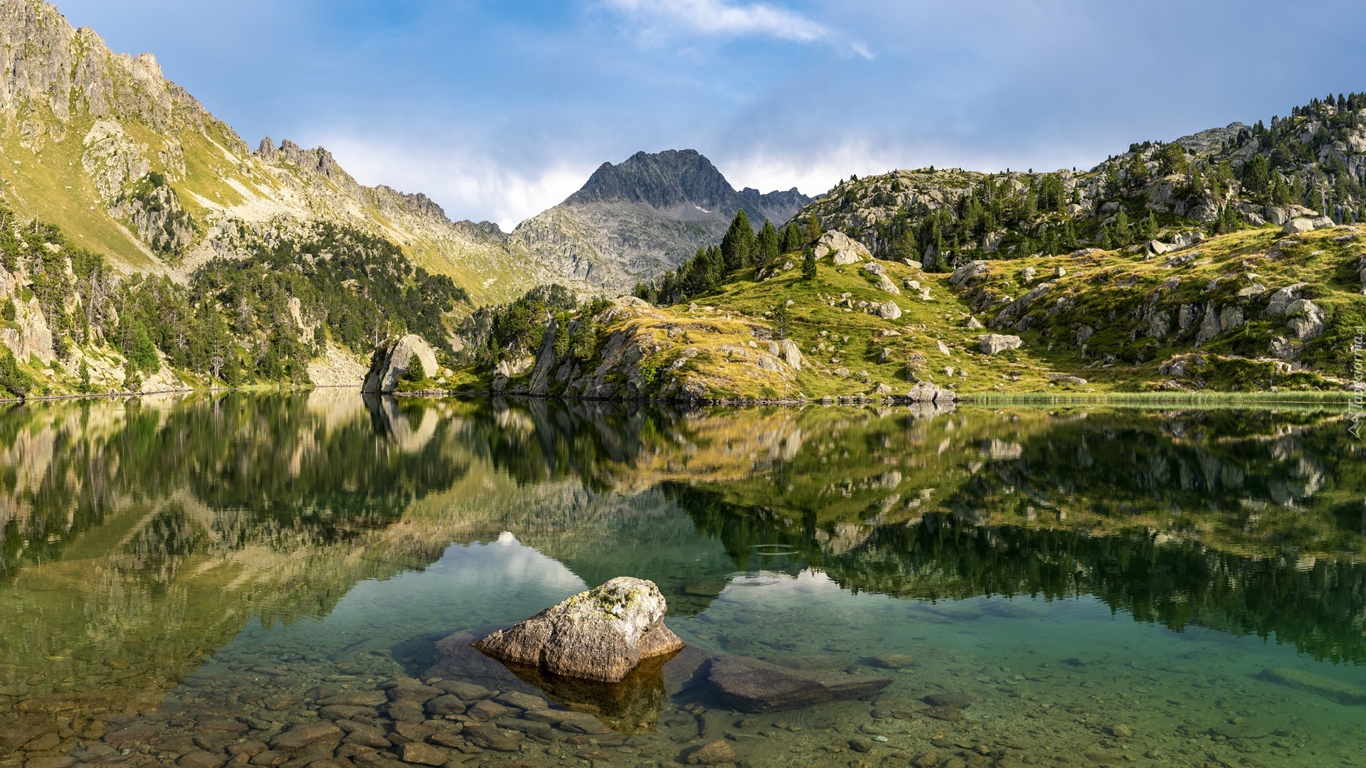 Edytor tapety: Jezioro Lac Long w hiszpańskich Pirenejach