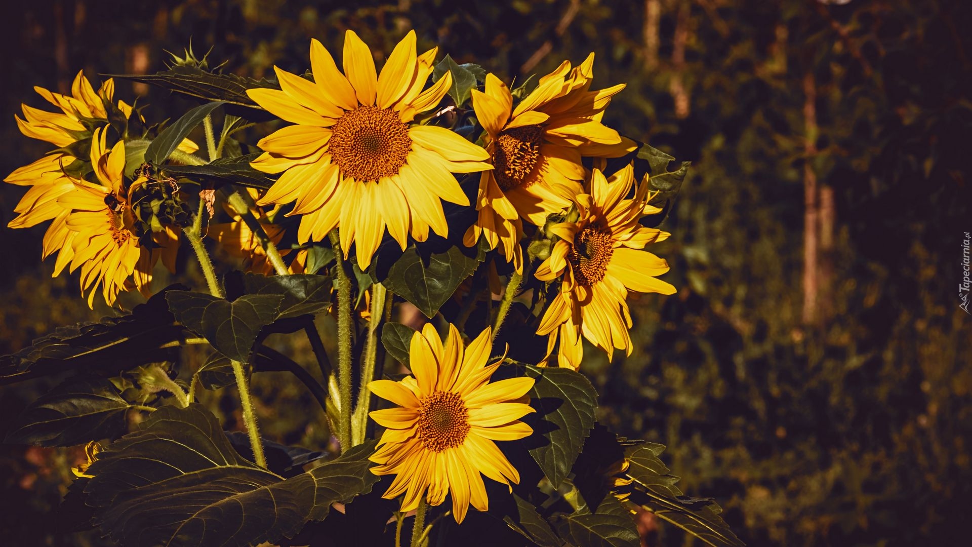 Edytor tapety: Rozświetlone kwiaty słonecznika