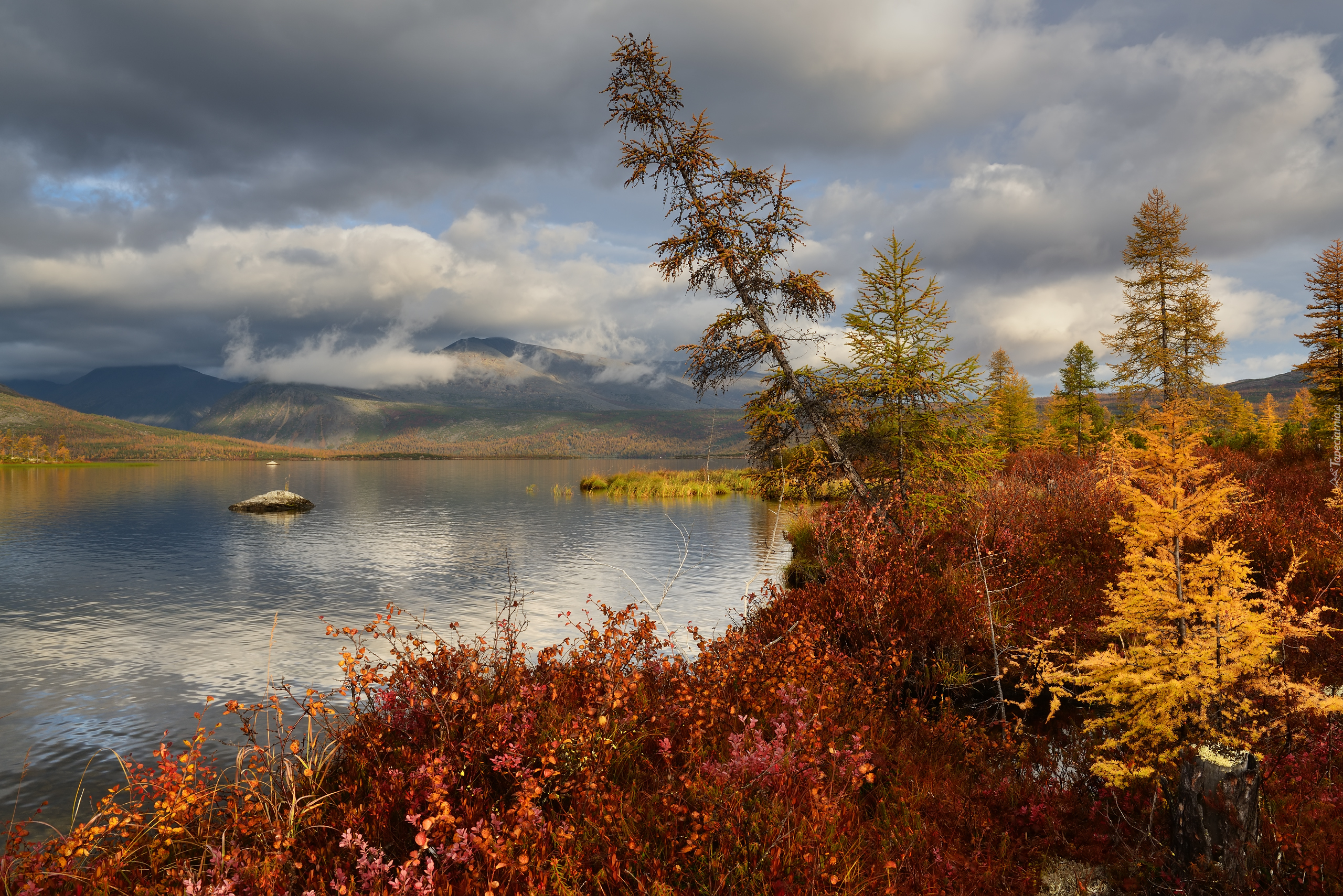 Edytor tapety: Jesienna roślinność przy jeziorze Jacka Londona na Kołymie