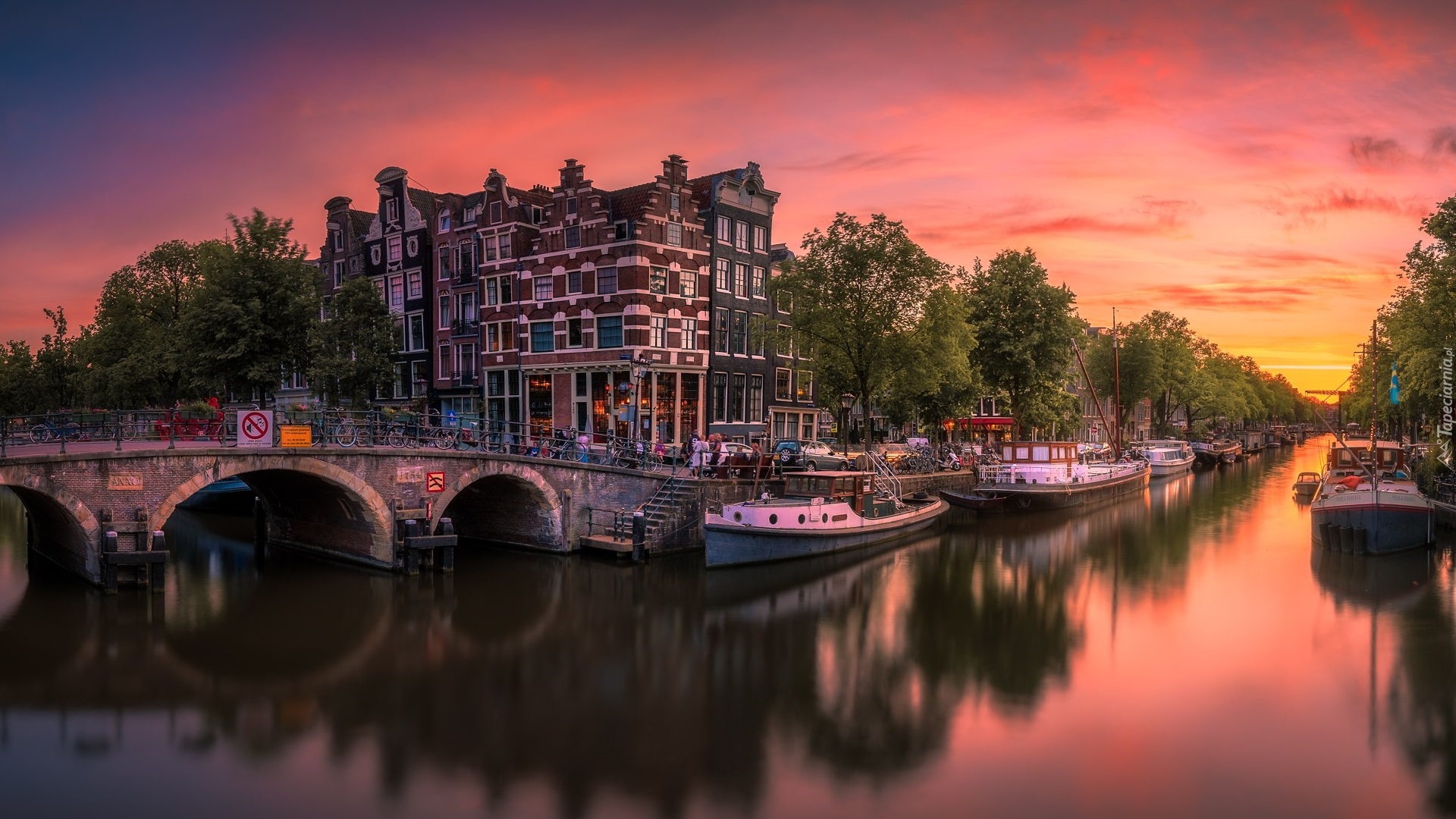 Edytor tapety: Łódki na kanale w Amsterdamie