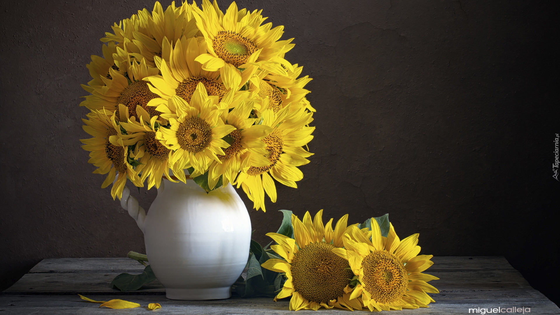 Edytor tapety: Słoneczniki w białym dzbanku