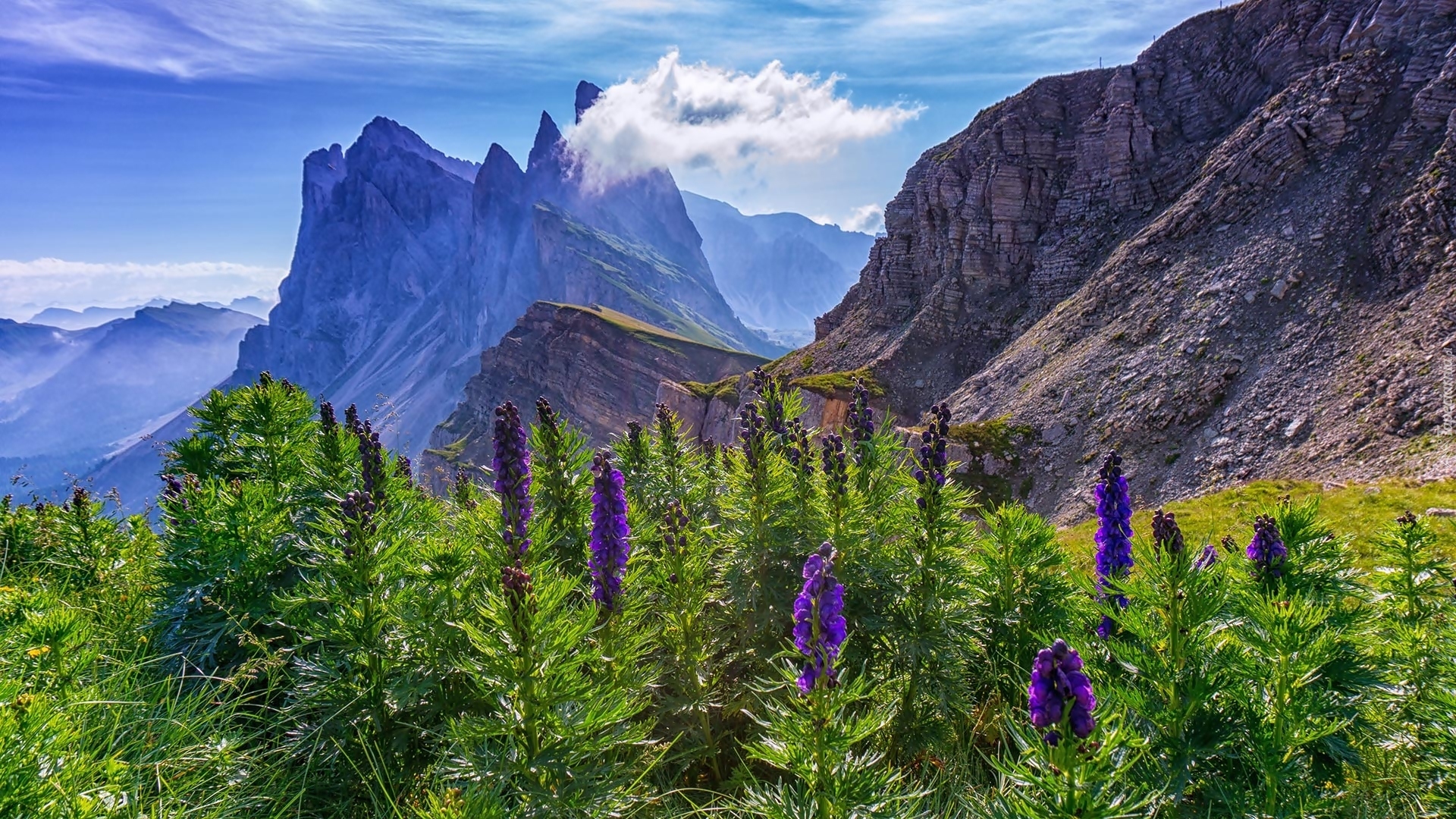 Edytor tapety: Widok na górę Seceda we włoskich Dolomitach