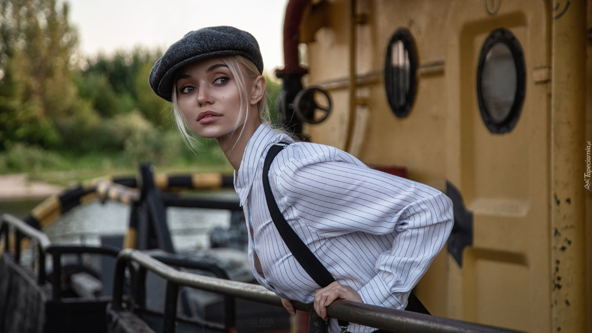 Edytor tapety: Blondynka w czapce z daszkiem