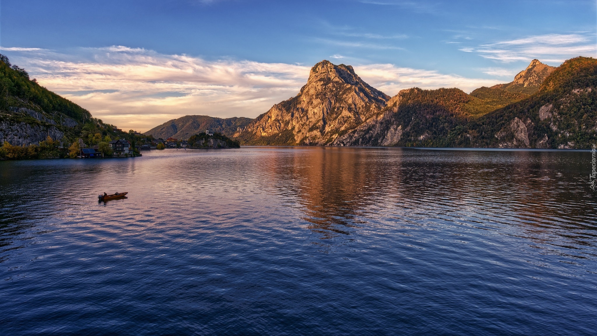 Edytor tapety: Szczyt Traunstein nad jeziorem Traunsse w Austrii
