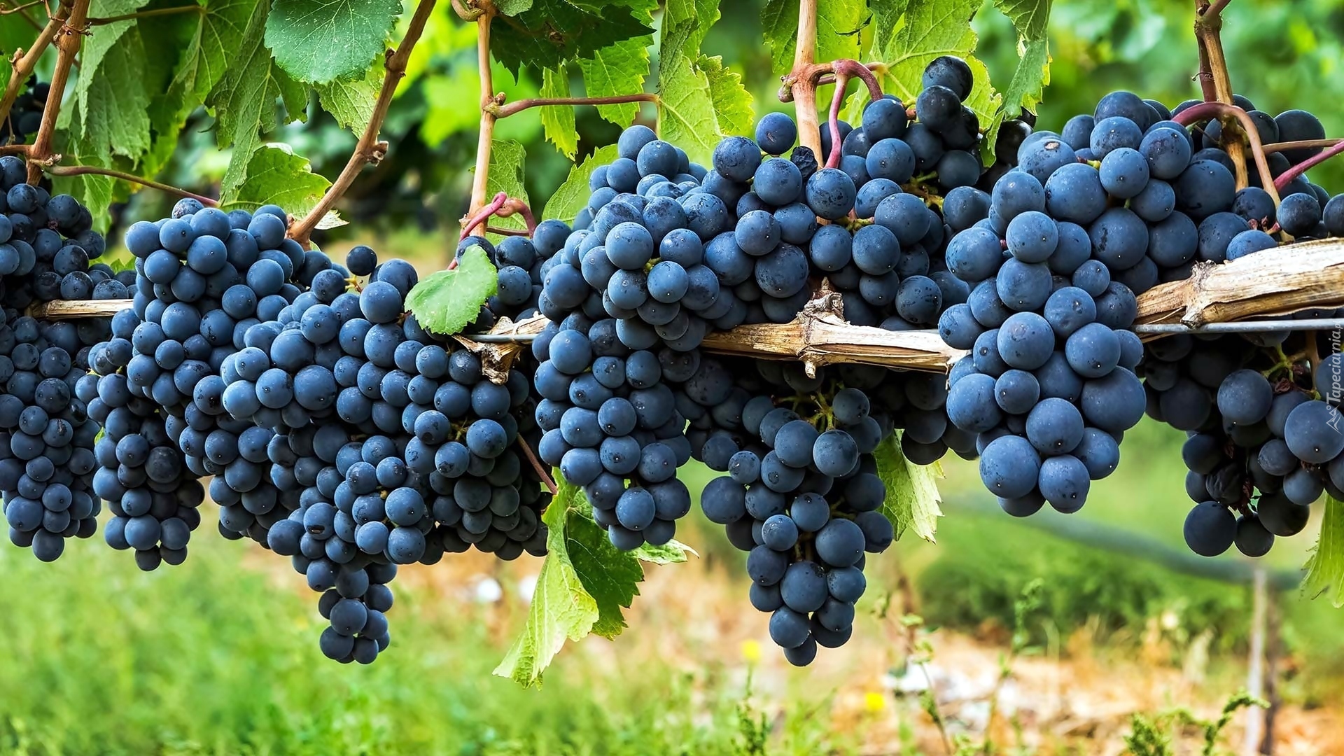 Edytor tapety: Dojrzałe kiście ciemnych winogron